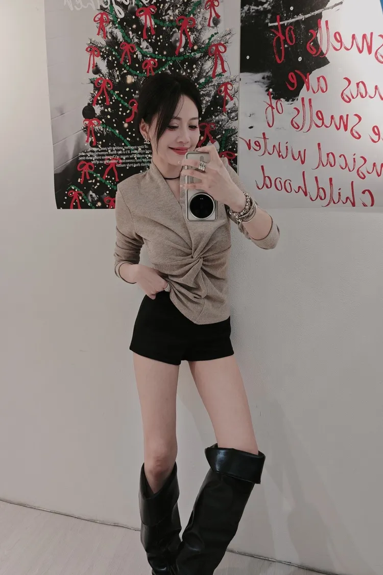 肚肚扭結針織衫