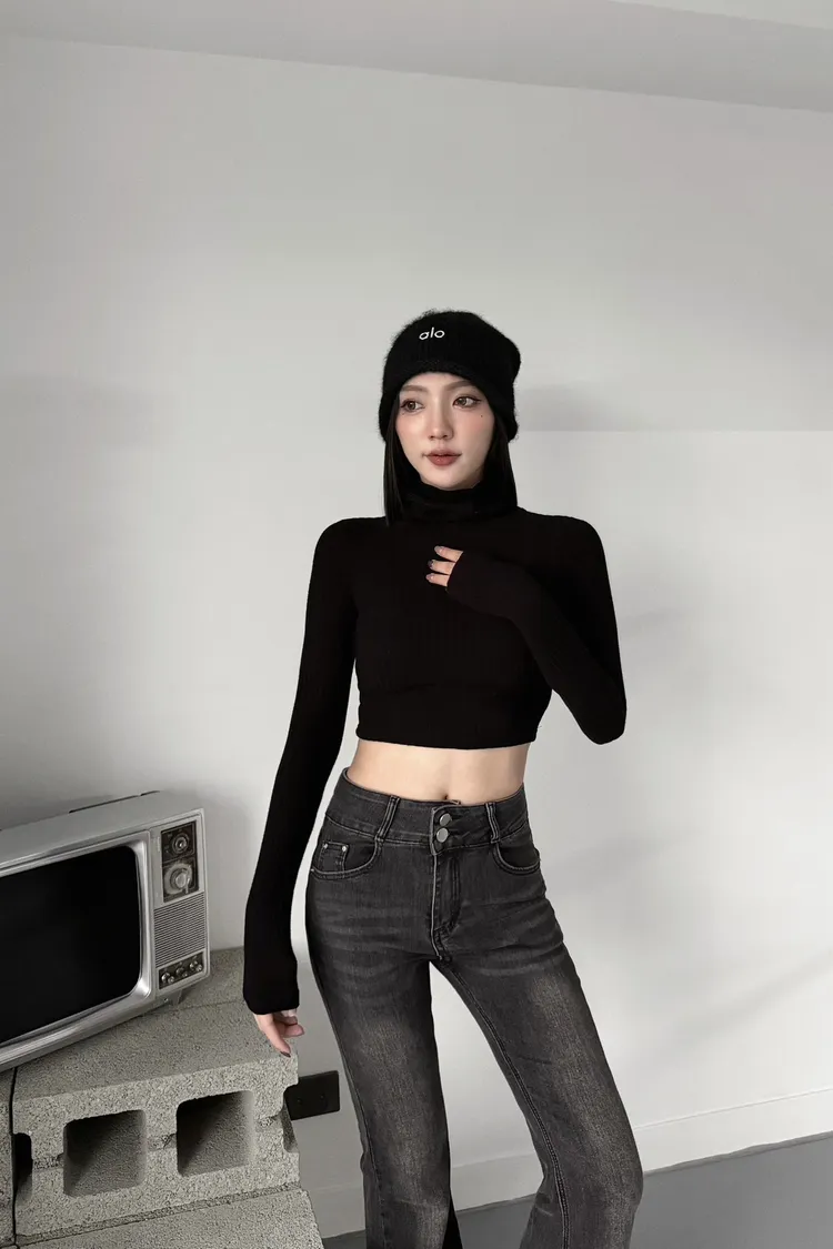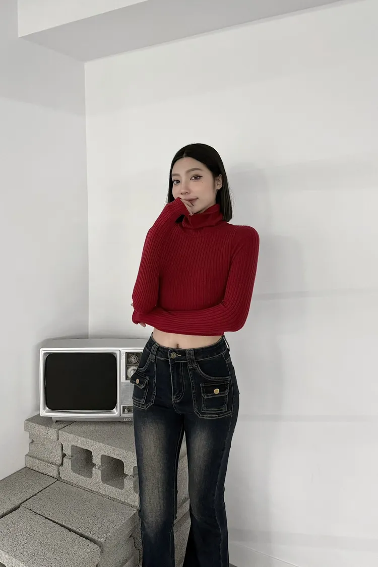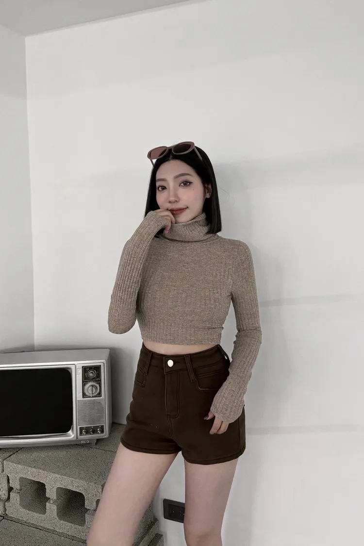 『訂製款』 磨毛高領坑條短版長袖上衣