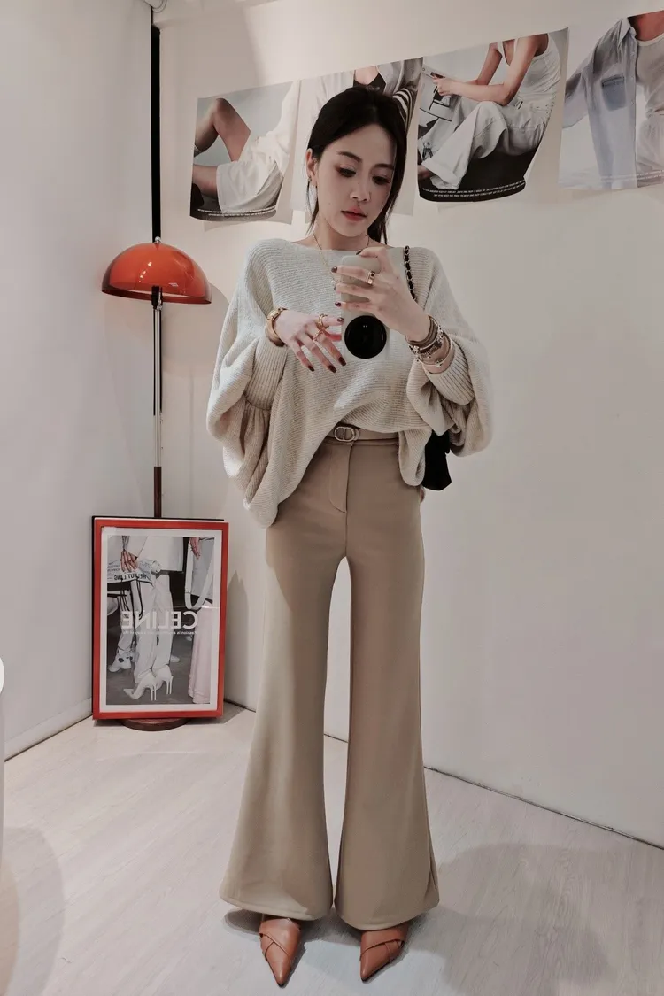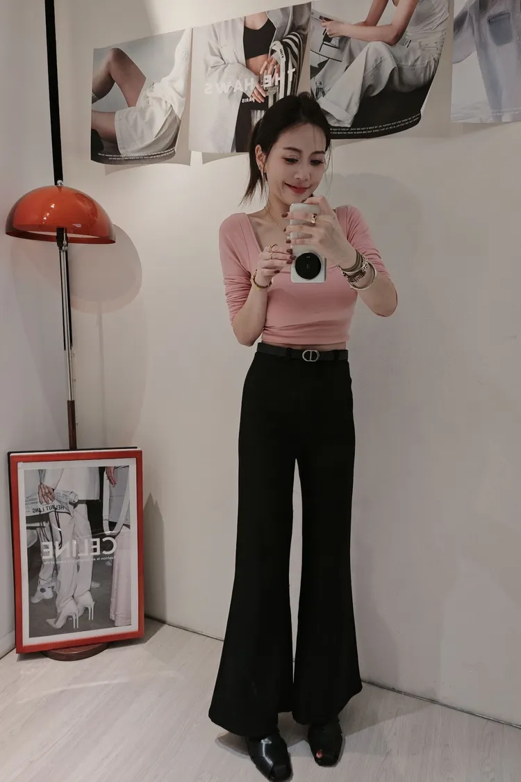 ✦附贈豬鼻子皮帶 ✦內裏全刷絨 ✦測量S號褲長約105公分 ✦正常版 有彈力 S M L 大腿寬鬆版型的喇叭褲 針對內側大腿肉肉就是極度友善啦 讓妳腿筆直筆直的走在路上 (藏肉款!) 彈力舒服好好穿 顏色:黑 杏 咖啡