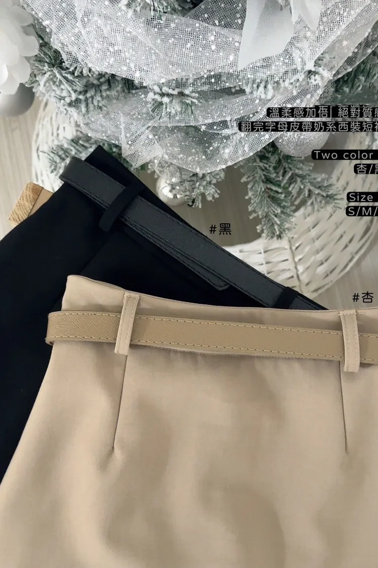 西裝短裙 任何風格都可以搭配的好幫手👌🏻 所有色系收集一遍 都不為過🤤 剛剛好的裙長 讓比例更好了 而且而且一樣有貼心內裏褲喔✨ 安全牌 奶系穿搭絕對必收的啦🥴🥴 Two color: 杏/黑 Size: S/M/L •附皮帶~~ •小隻女的福音