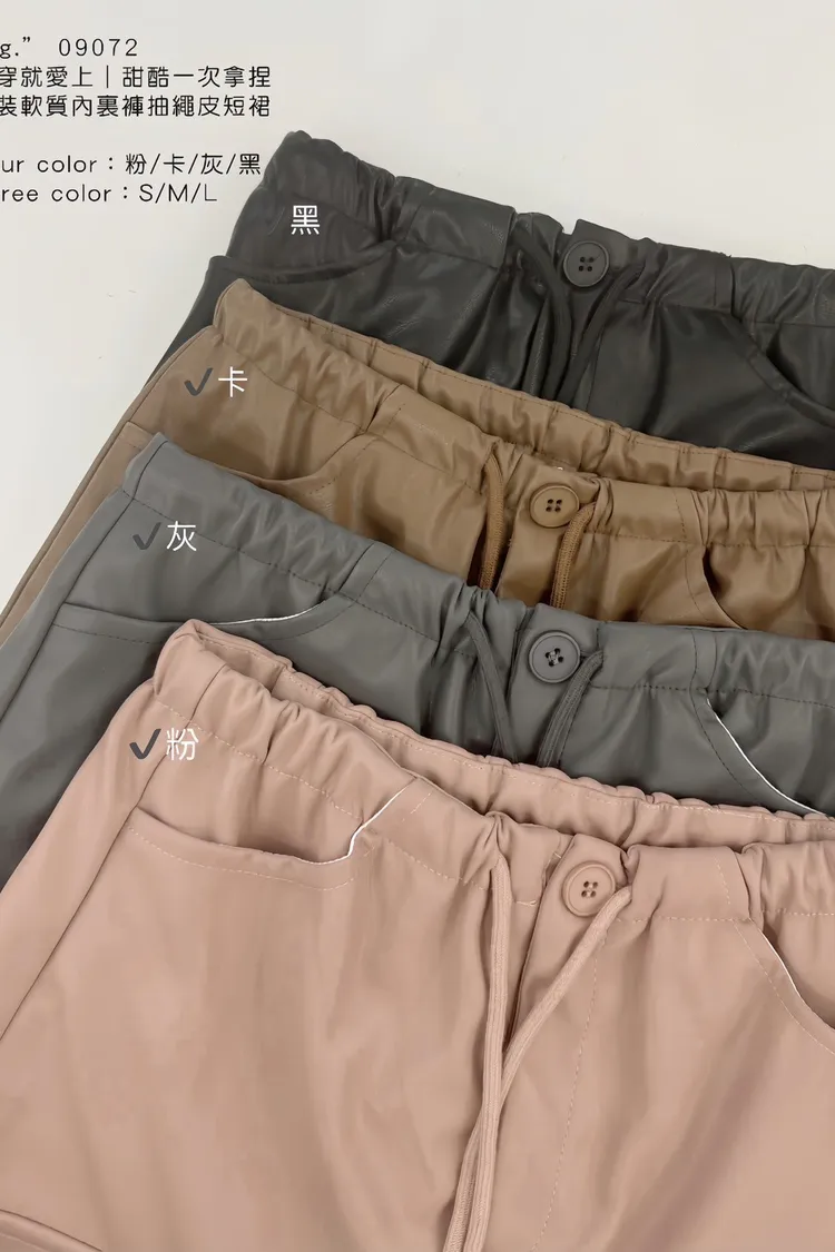 皮質超好👍🏻抽繩縮腰 自行調整舒服的腰圍~小A 版型舒適是任何身型的百搭天菜✔️自帶內裏褲✨不怕走光還有分尺寸呦~也不用擔心內裏褲 卡大腿肉肉 ((超級貼心🥰 •不卡檔超級顯腿長•搭配基本款上衣都是辣妹本姊
