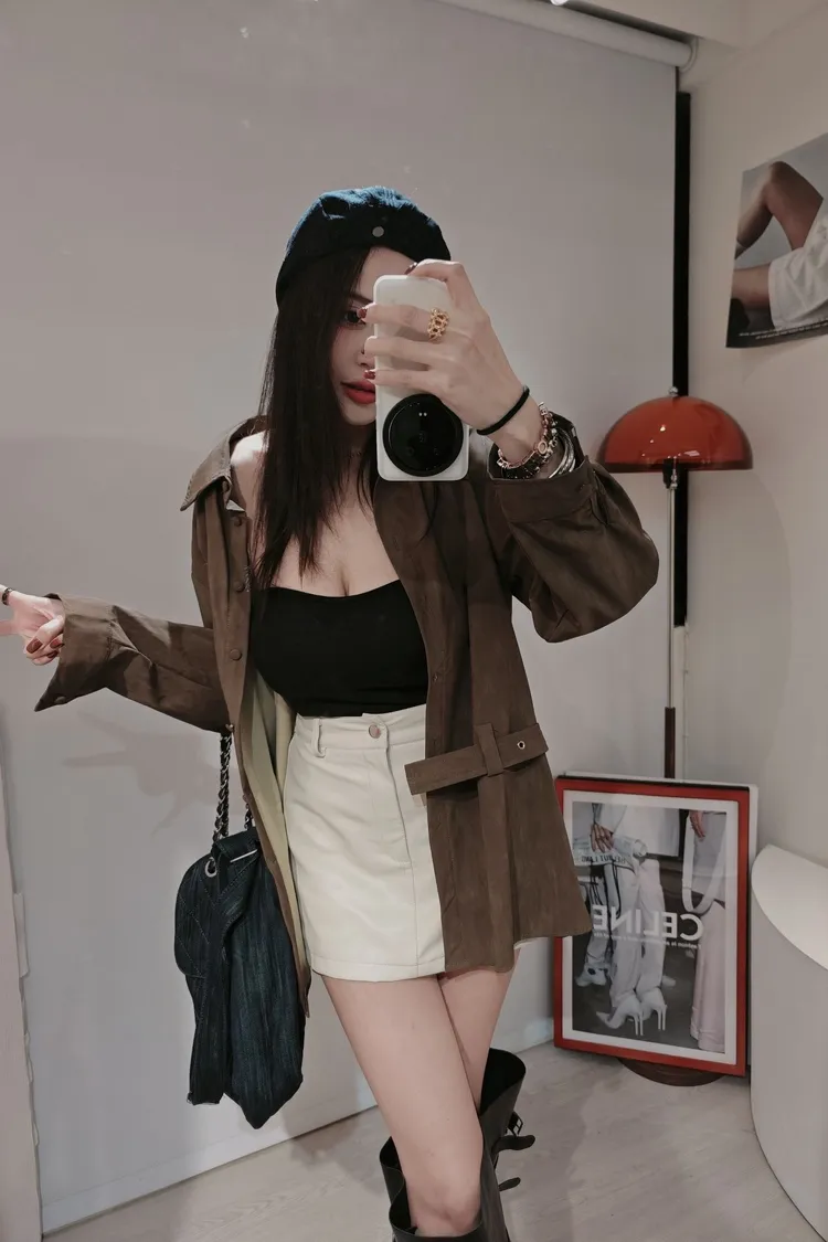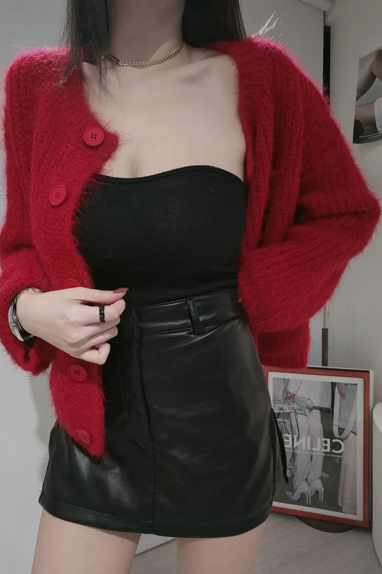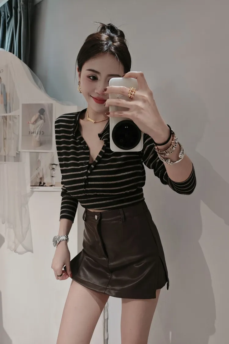 雙開叉皮短裙
