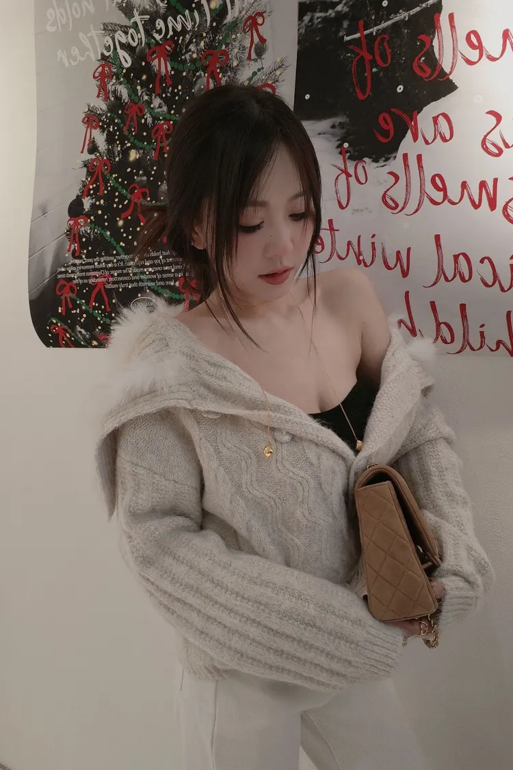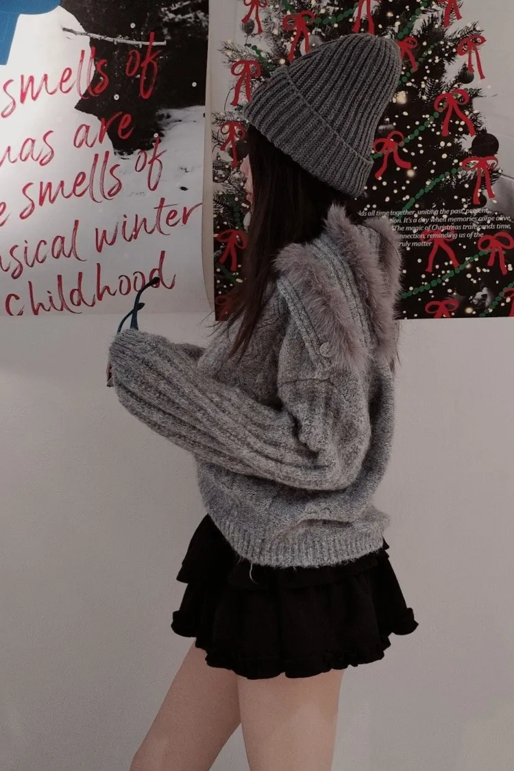 兔毛翻領兩穿罩衫