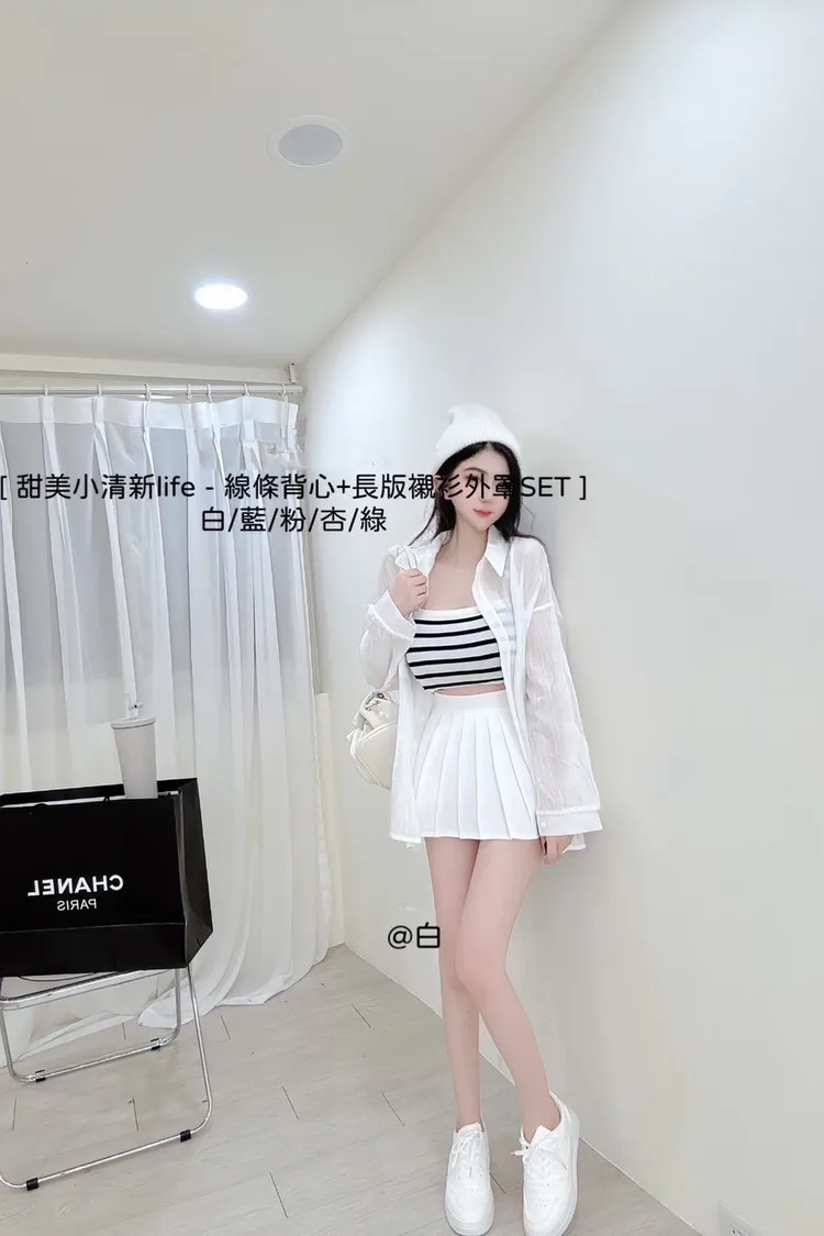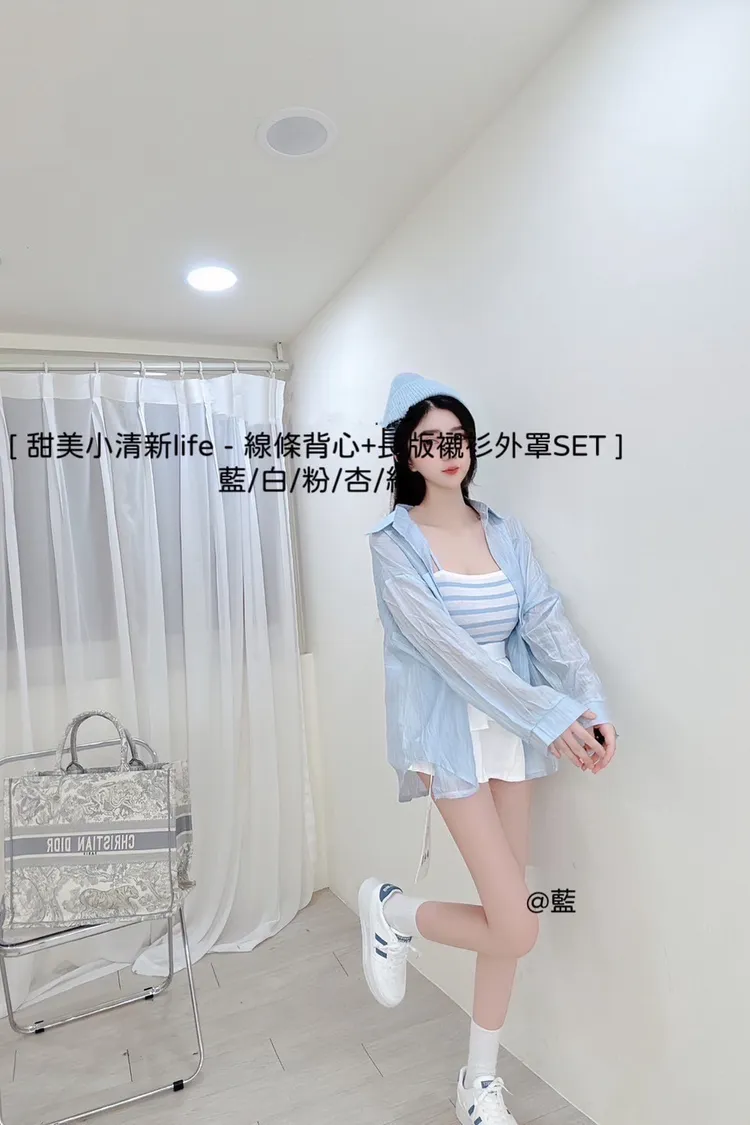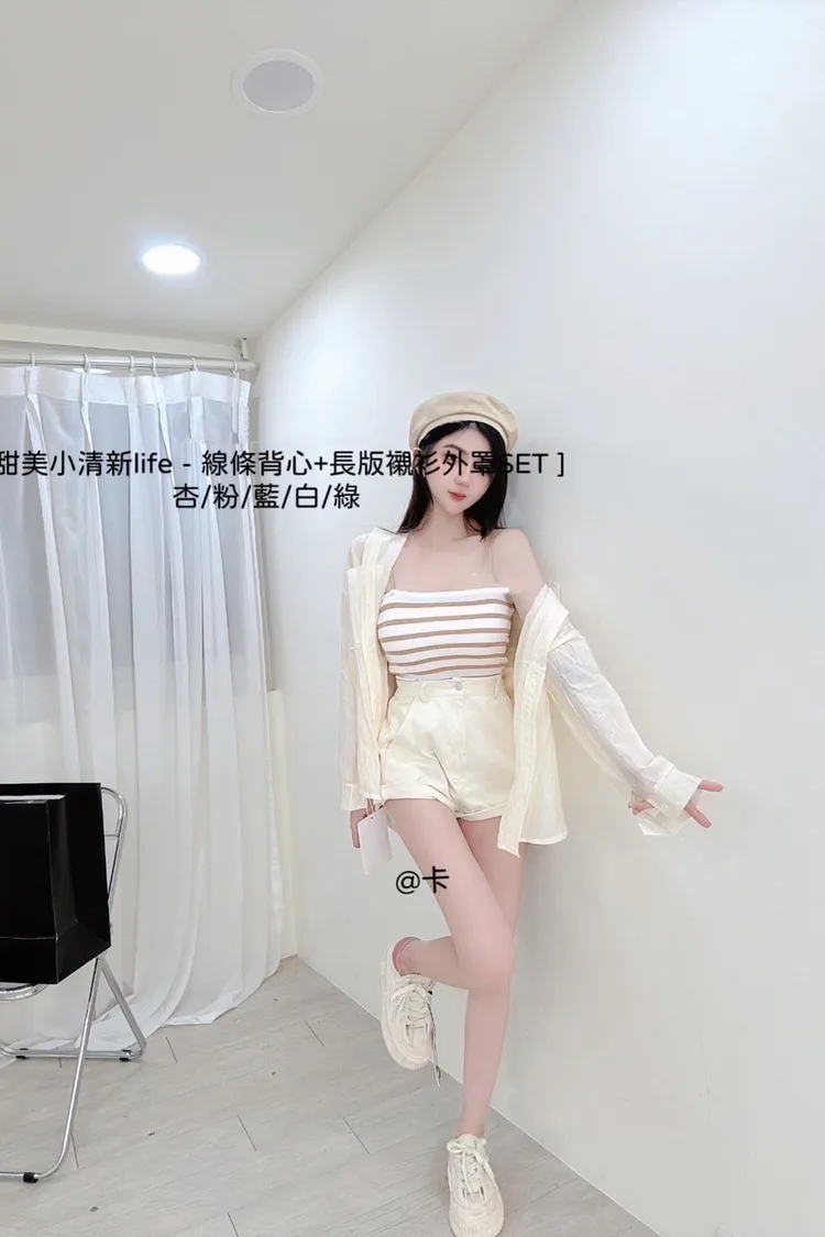 線條背心+長版襯衫外罩SET