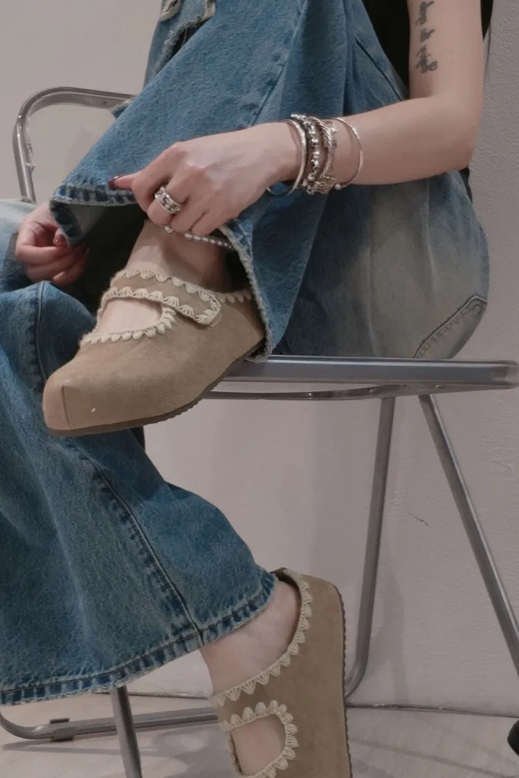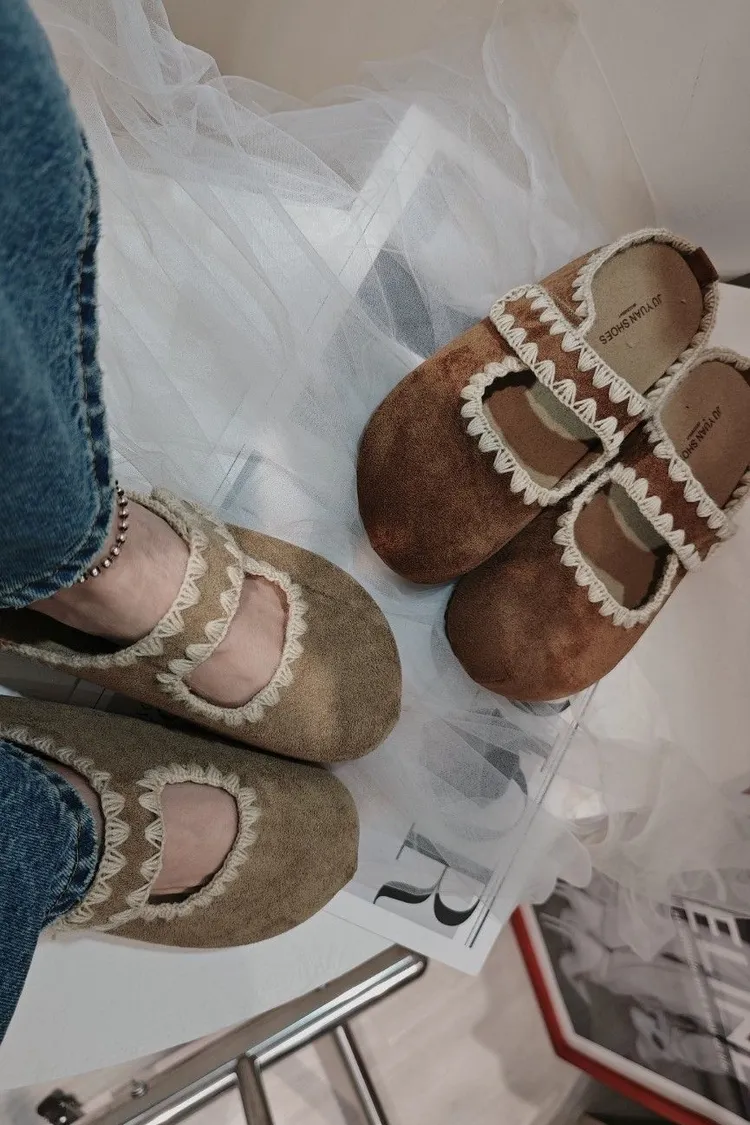 可愛的麂皮娃娃半拖