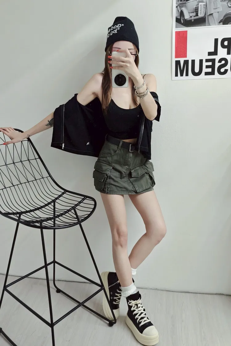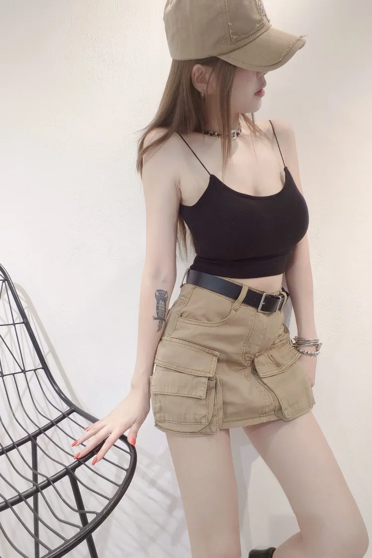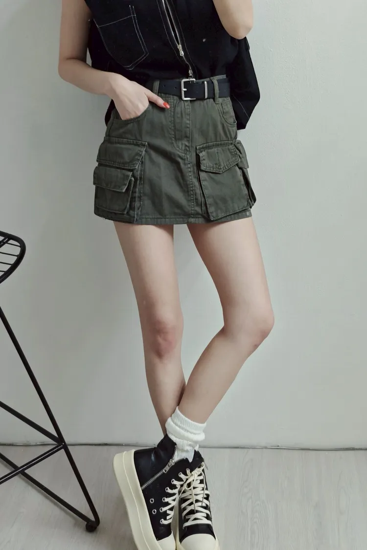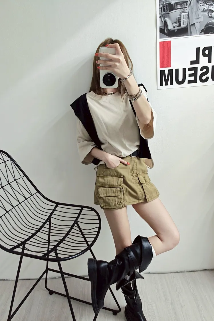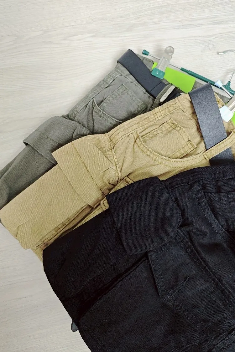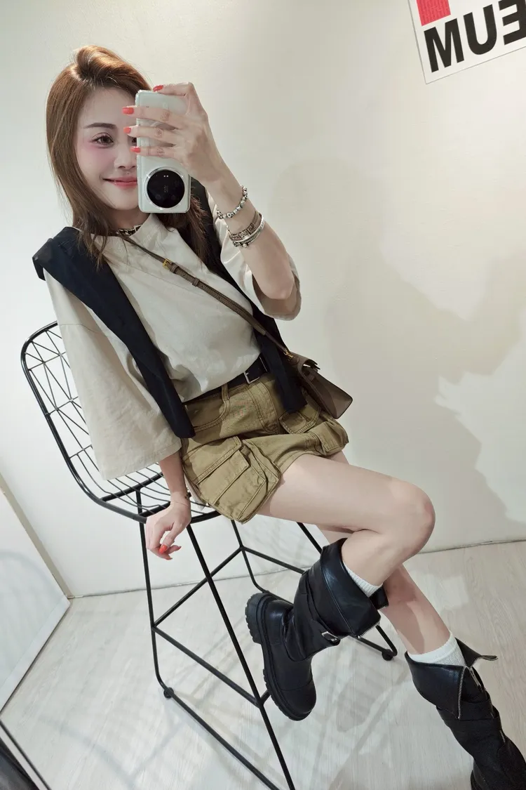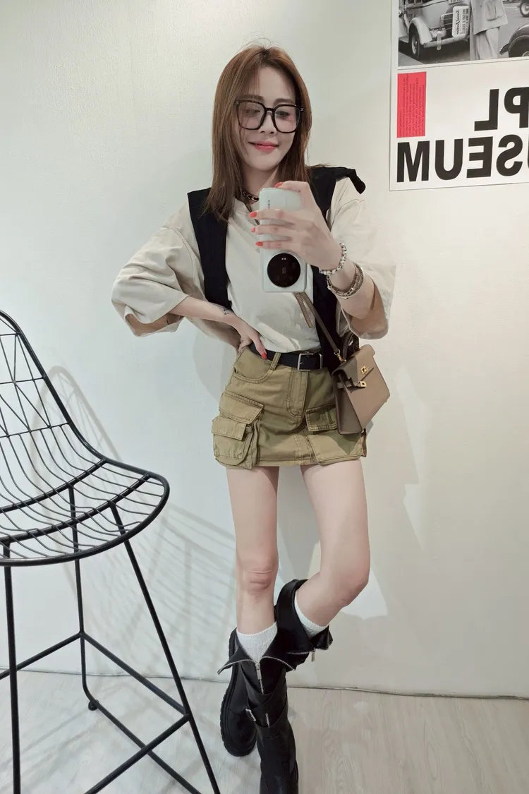 A字版型修飾梨形身材超正點、附加皮帶。♡卡其料子、內裡有不卡逼安全褲♡韓國同款版♡正常版 無彈 S M L顏色:綠 卡 黑