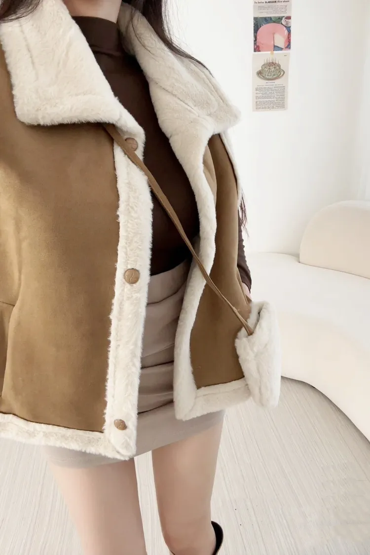 這件真的太、可、愛、了🤍 毛毛拼接+羔毛翻領一穿上就有韓系溫柔氛圍✨ 外層是麂皮拼毛設計 內裏全鋪毛~~🐻 保暖又不厚重 微寬版整體版型超顯瘦! 附上同材質毛毛側背包👜 出門不用再想搭什麼包 一套穿上就直接高級又俐落💫 Four color: 藍/卡/粉/白 •附同色毛毛側背包 整體感滿分 •顯瘦又好搭