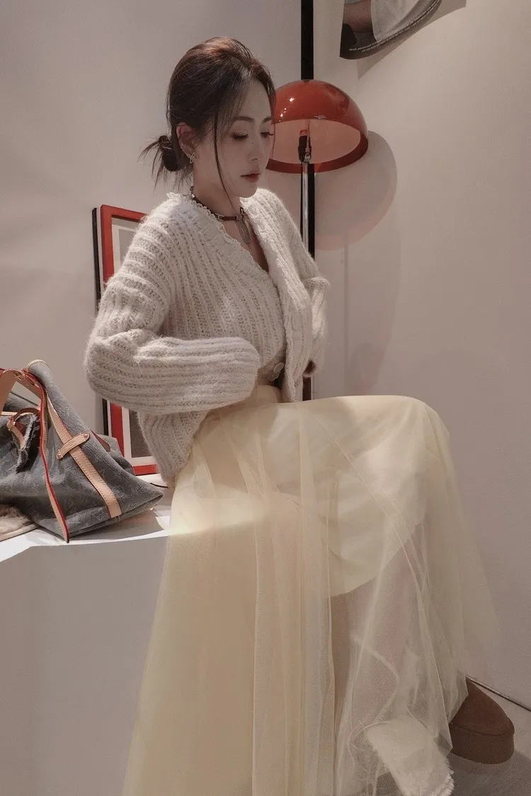 腰寬31~50 全長81cm ✦可以穿到XL ✦非刷絨材質 適合一年四季 澎湃網紗 冬天絕對是毛衣的真愛搭配系列 不管是個性還是甜美 紗裙都能營造出滿滿的氛圍感 真的怕冷的 加絨光腿神器尬進去!! 顏色:黑 鵝黃 咖啡 藍莓