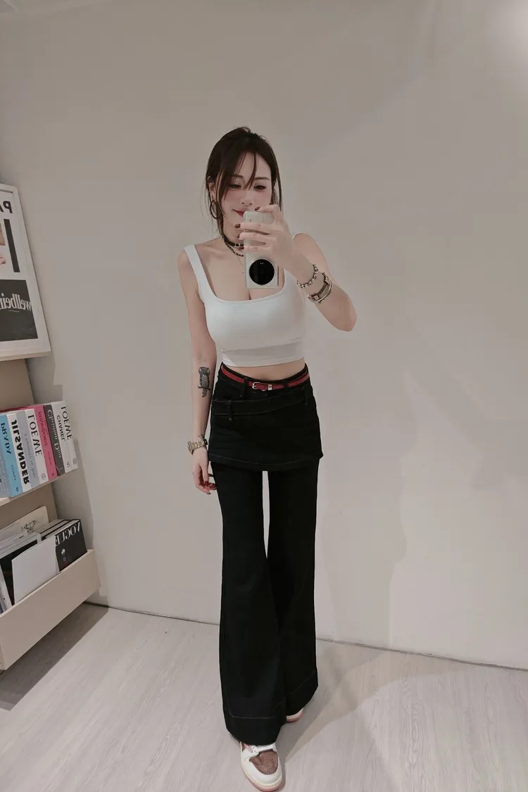 ✦附腰帶以及小掛飾 ✦正常尺寸有彈力 S M L XL ✦S褲長約106公分 修身不緊身,不會讓大腿肉肉一覽無遺的暴露在面前!版型超級顯瘦 前面片裙造型、屁股就是正常褲子 這組我推推!單色韓國藍(yay) 顏色:圖片色