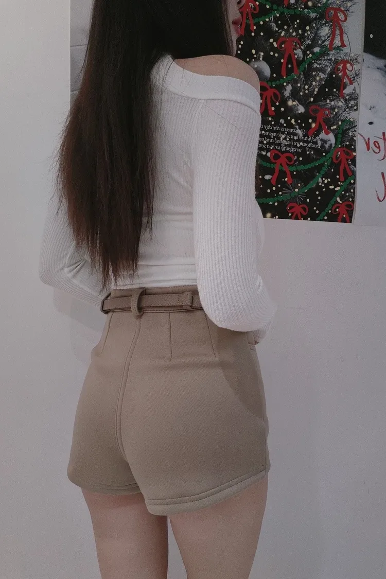 凱莉小皮帶刷絨短褲