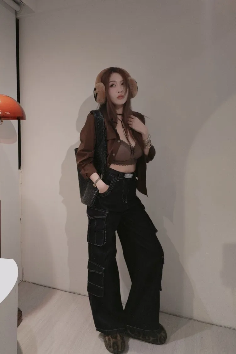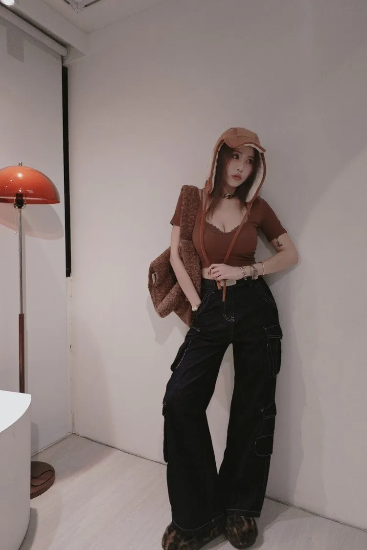 深藍色口袋工裝褲
