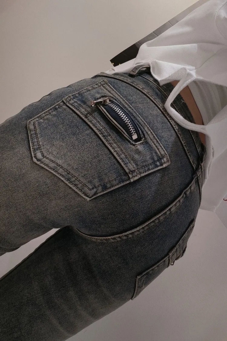 ✦雙扣造型 後口袋有拉鏈