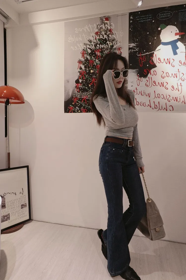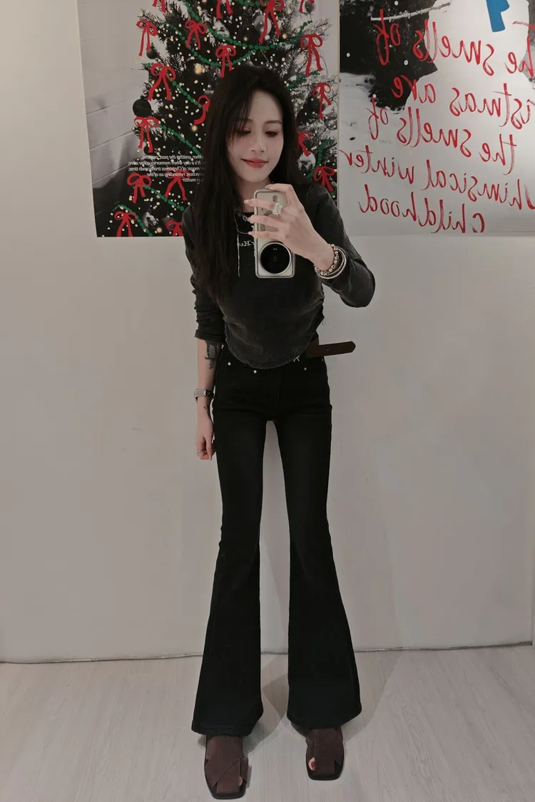 看不出來有刷絨的腿細喇叭褲