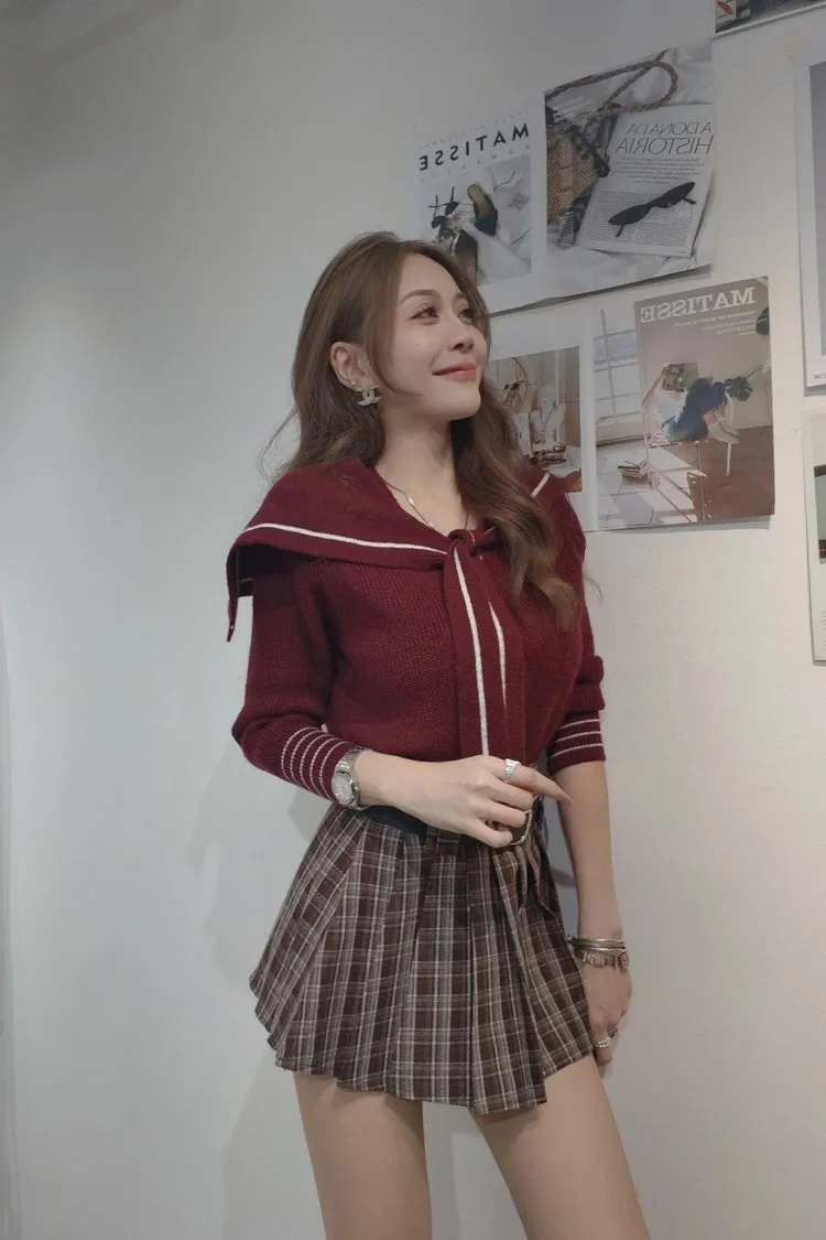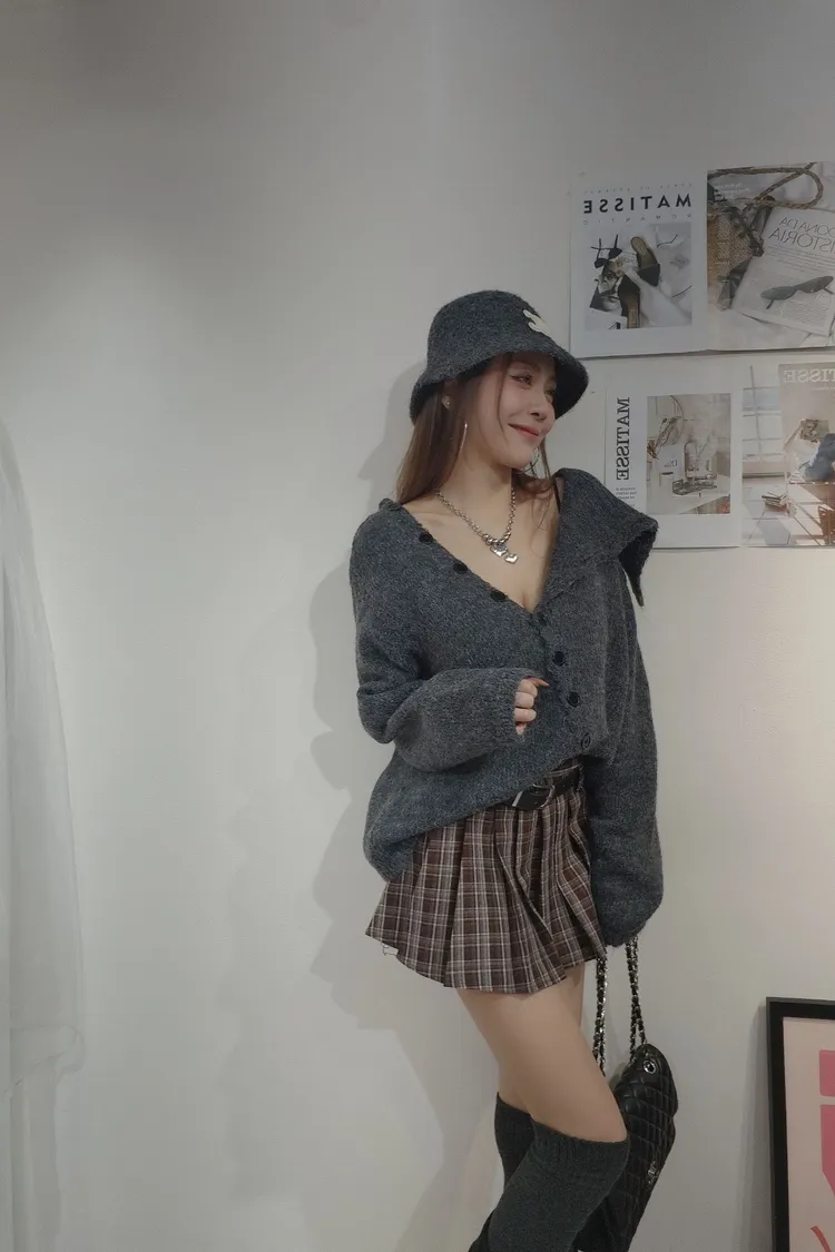 -棕色係格紋不老氣!反而很甜
