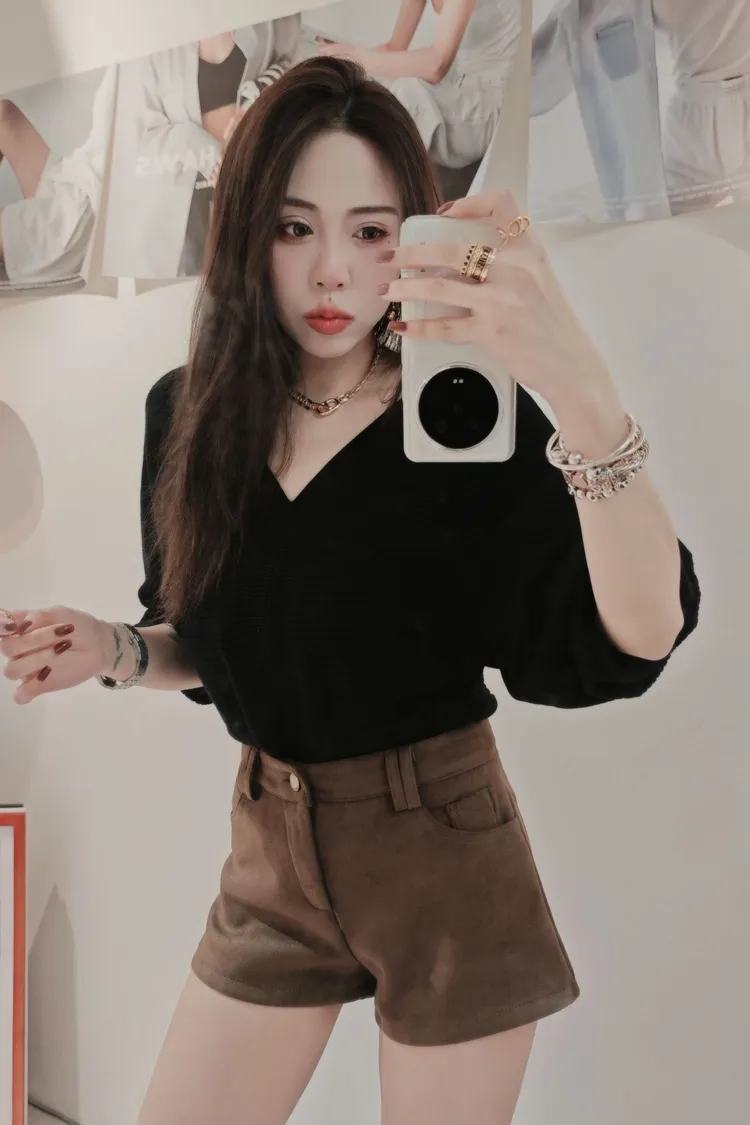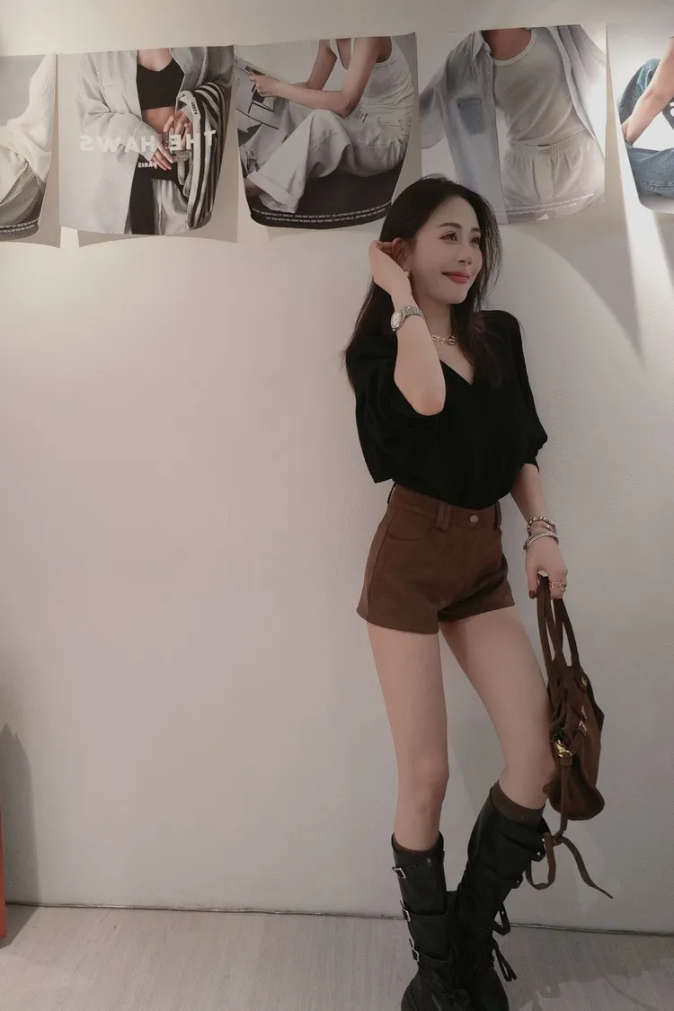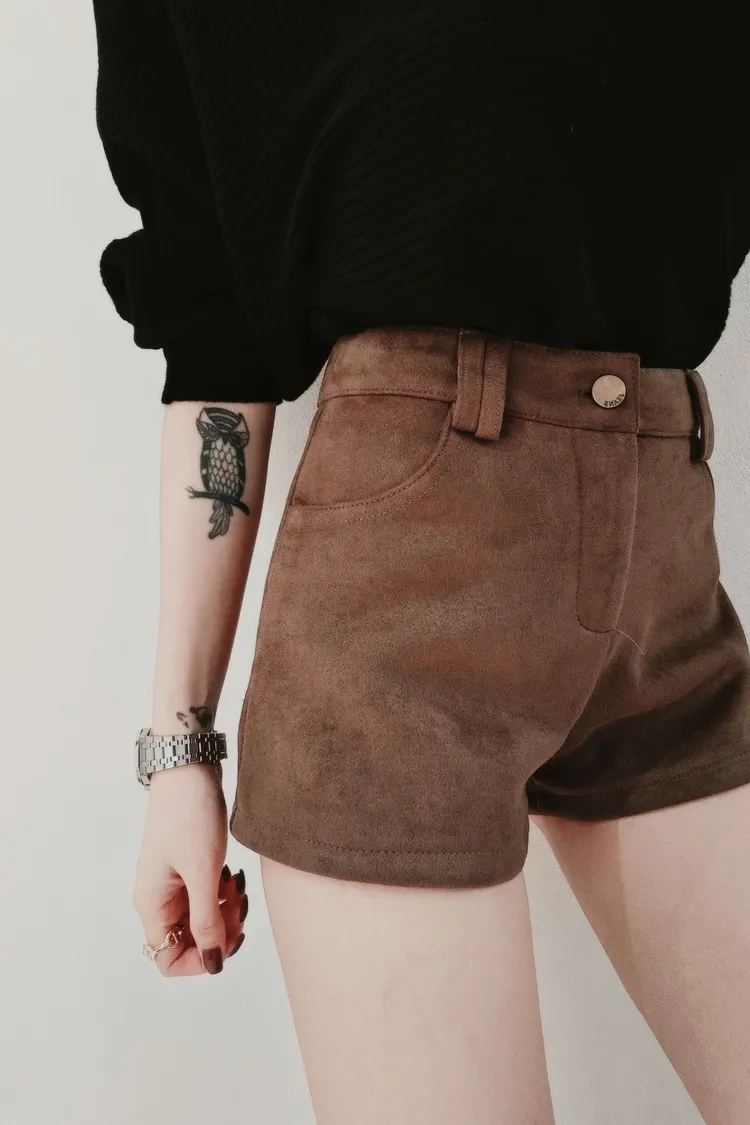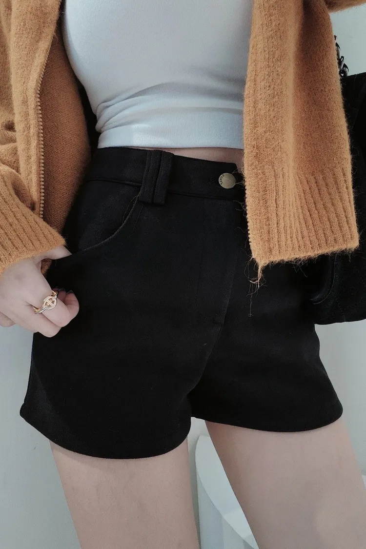 單扣鹿皮絨短褲
