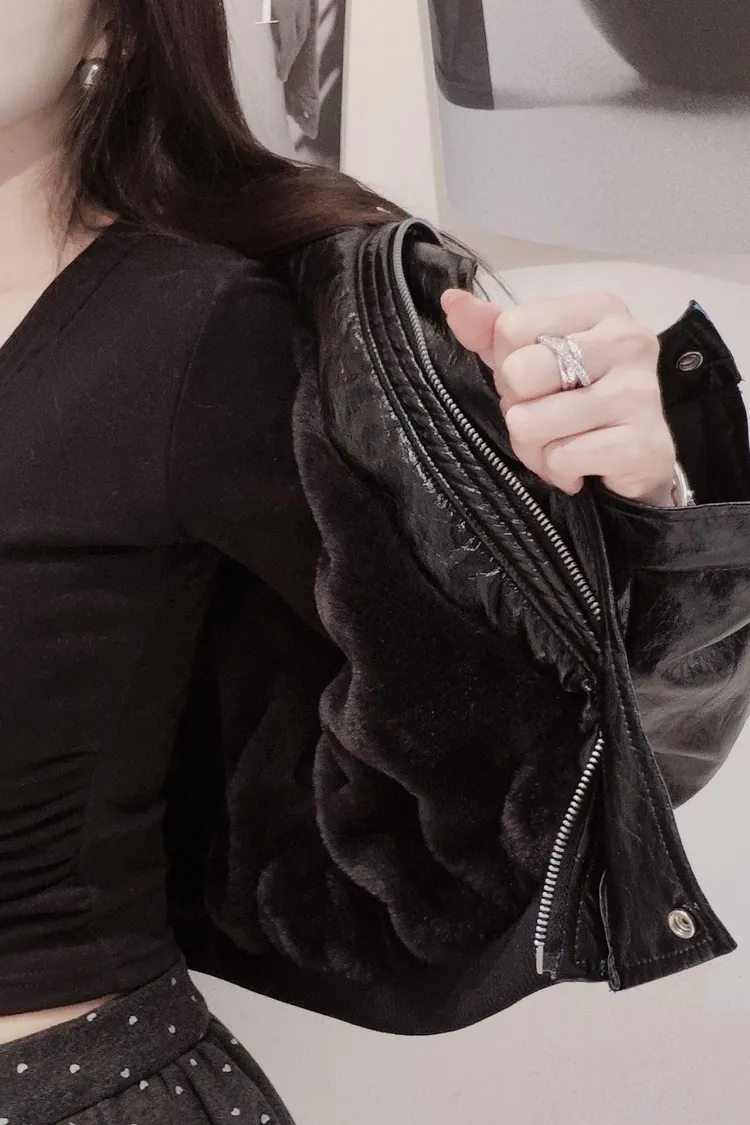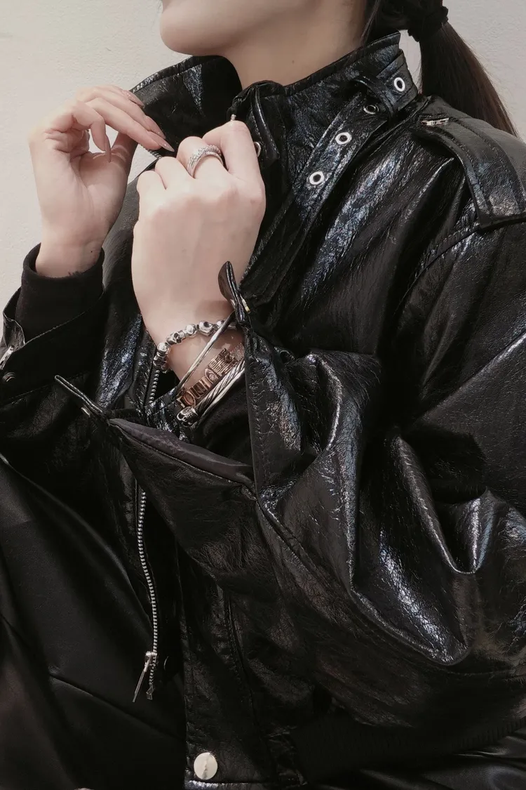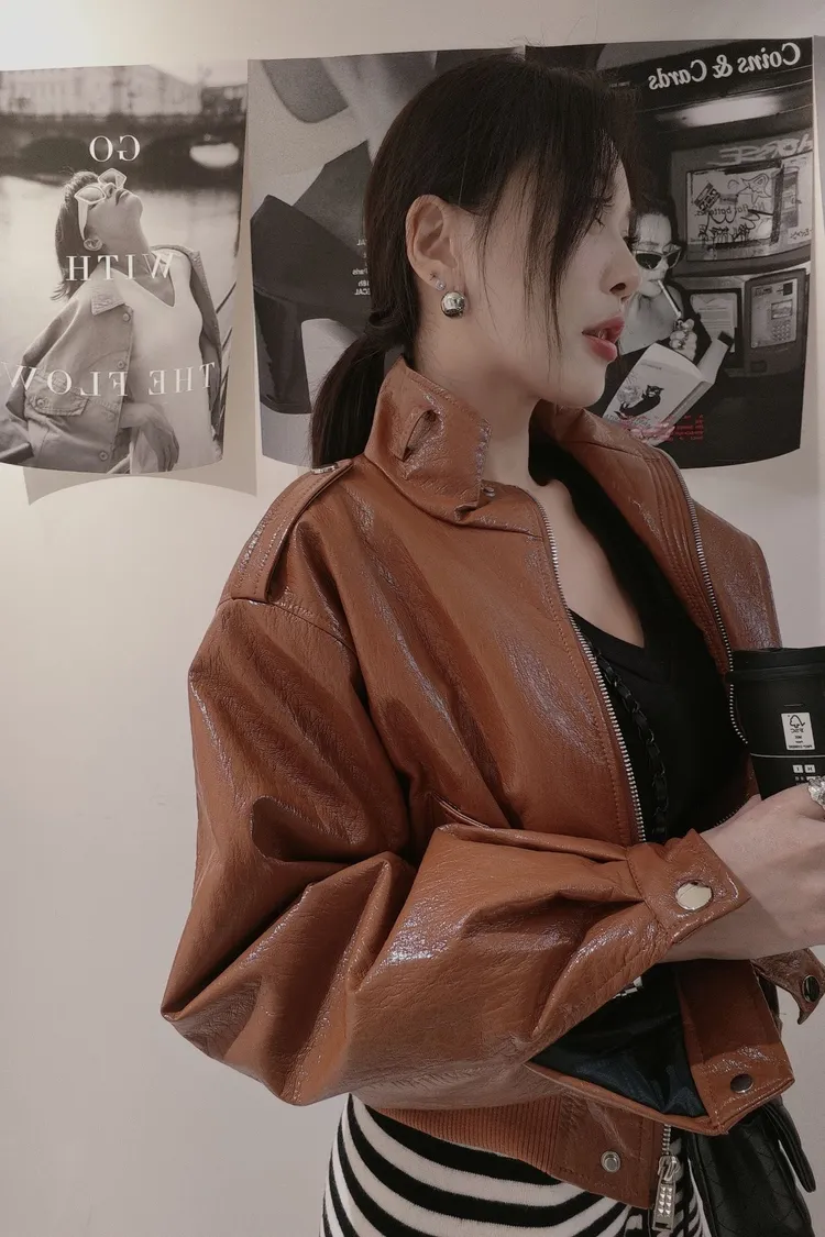 油蠟皮短款機車皮外套