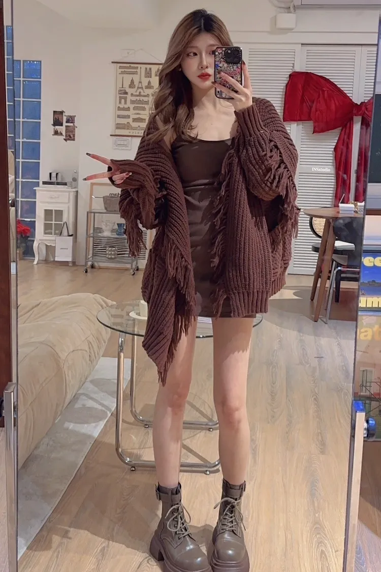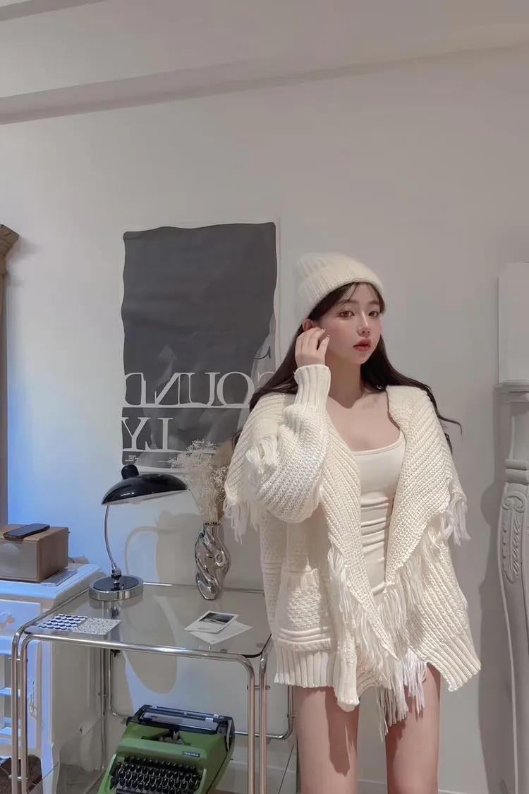 冬季氛圍感代表!閉眼入準沒錯!重工手工流蘇織法 質感完全不馬乎自帶挺括感 份量感恰到好處~ 廓形寬寬松松 藏肉效果超棒 大大的復古海軍翻領 營造青春氛圍寬鬆版型 整體看起來巨顯瘦獨家嚴選色✨暖暖糯糯的焦糖深咖色~狠狠拿捏了美拉德色系絕對是暖色系裡的天花板 深灰色真的就是妥妥的顯高級獨家 深灰 美拉德咖 ;熱賣色 奶白 米棕