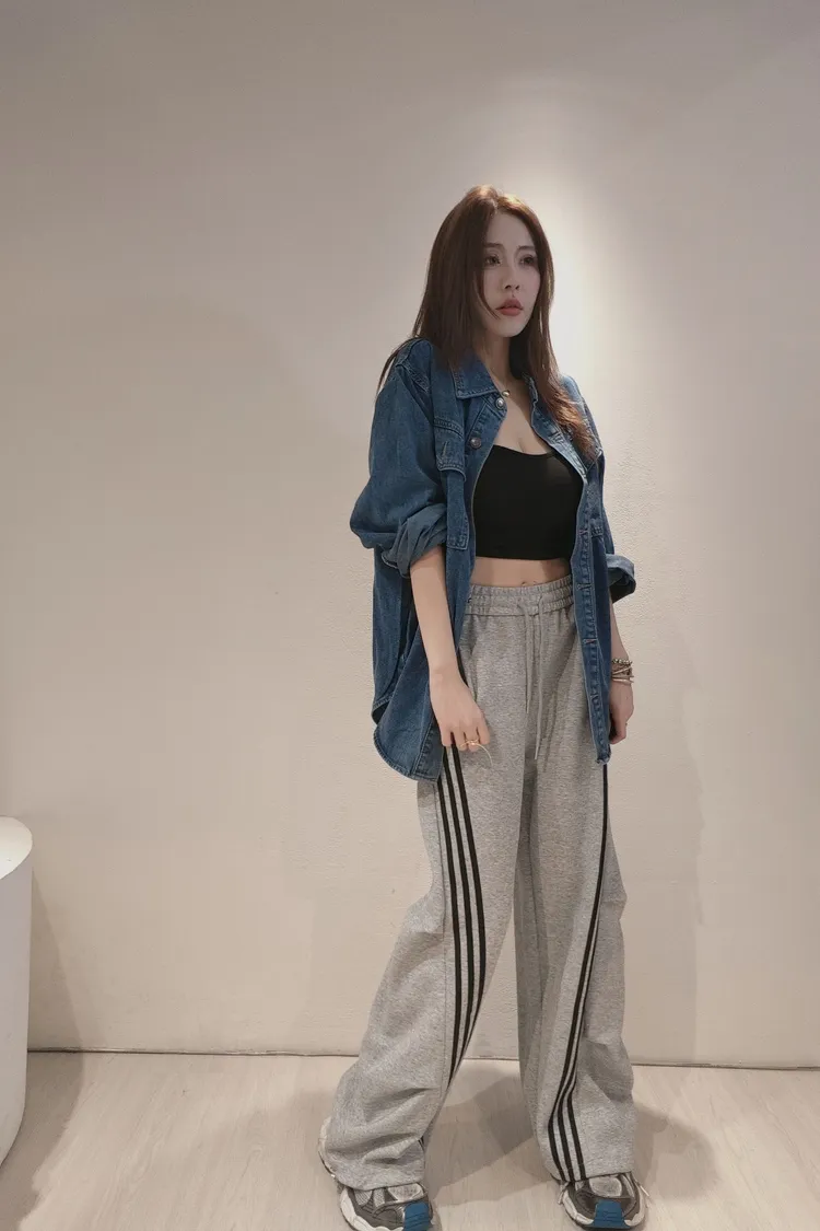 邊條造型休閒寬褲