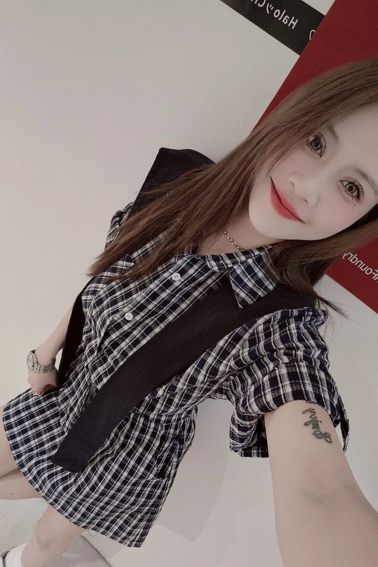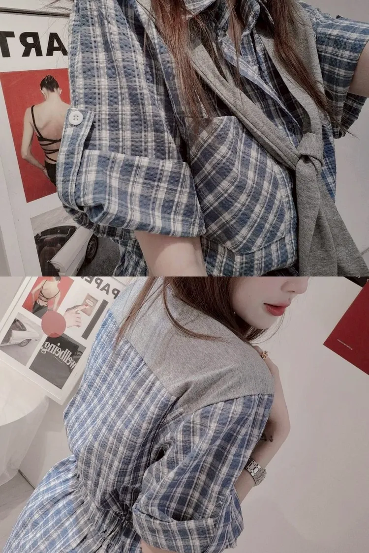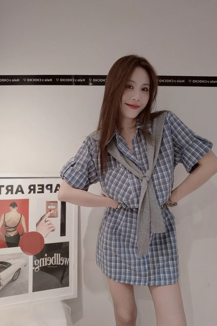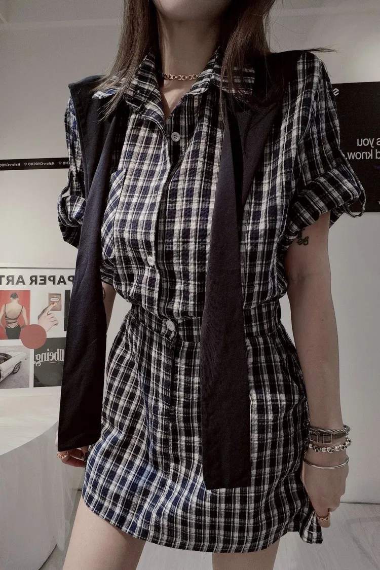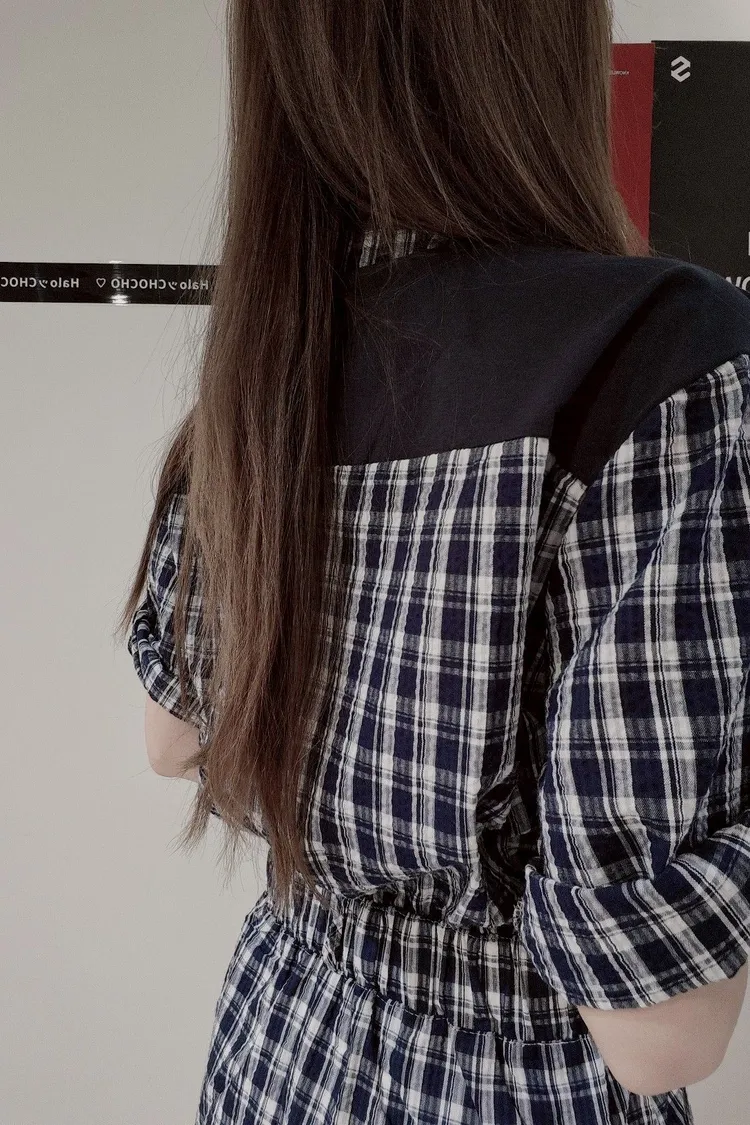 自帶披肩格子洋