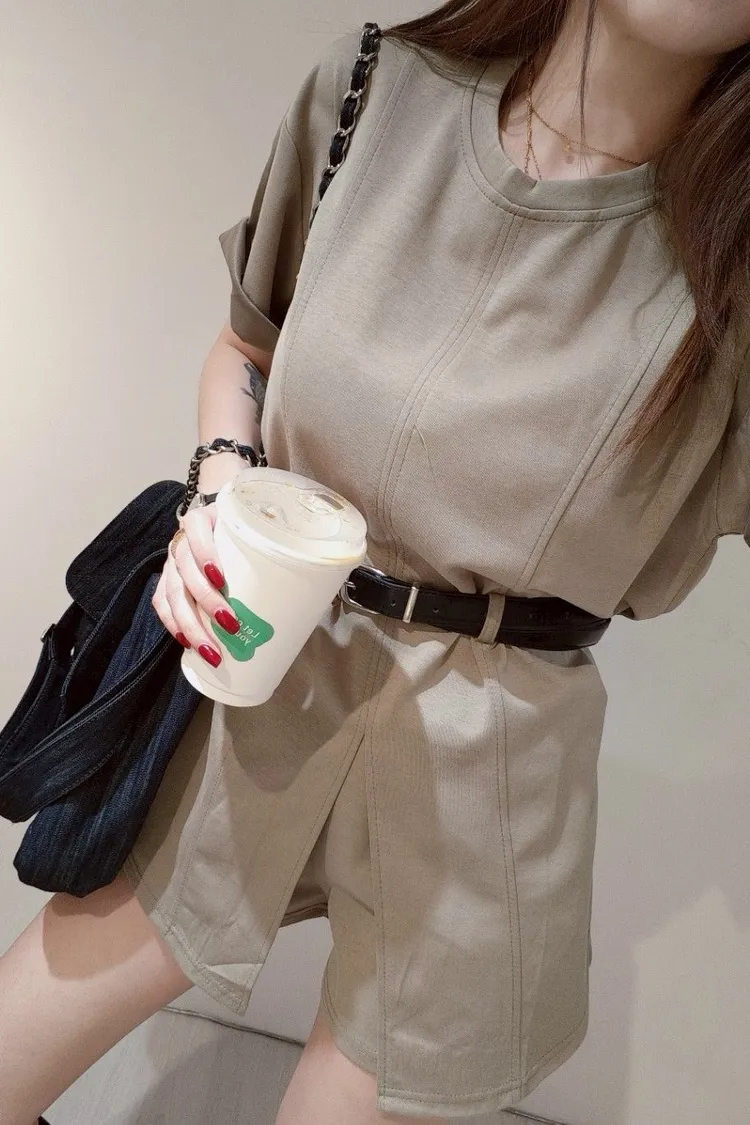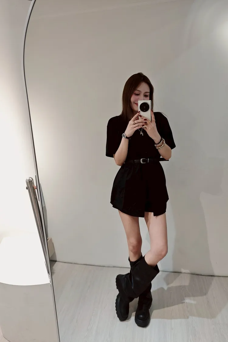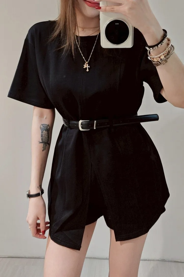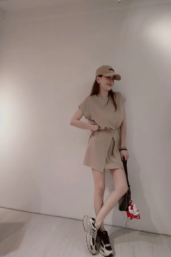 ✦上衣+鬆緊腰口袋短褲+皮帶