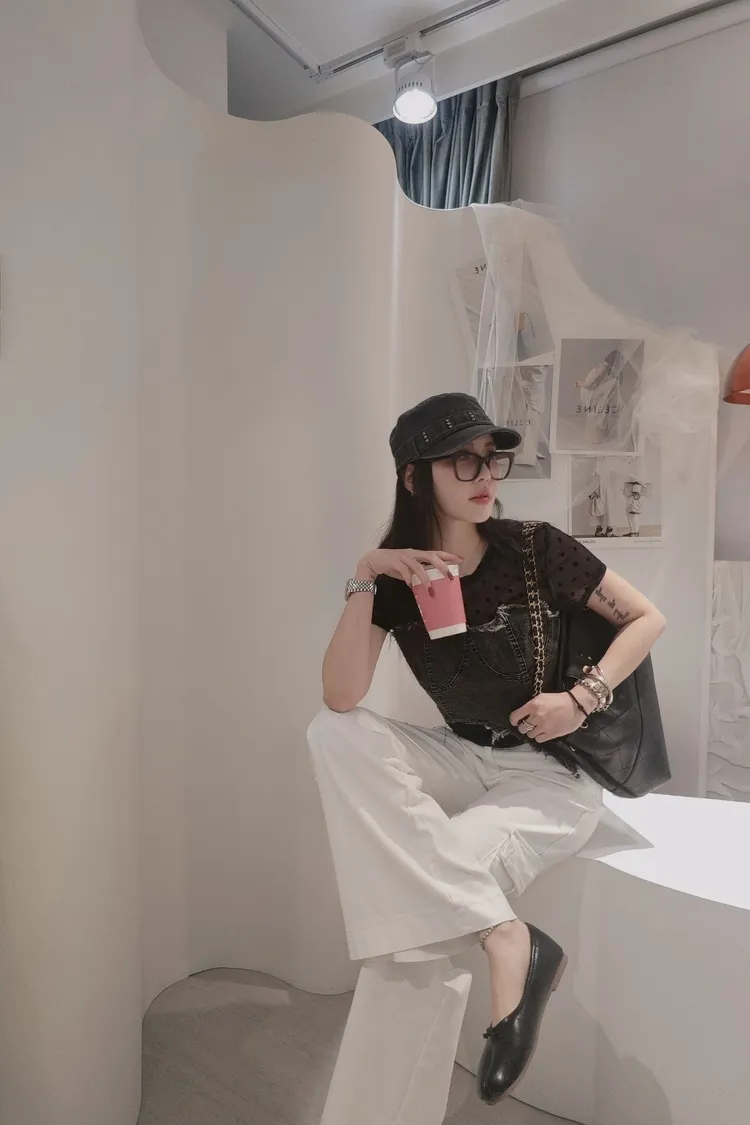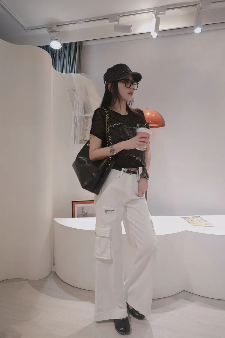 搭配洗水斜邊牛仔