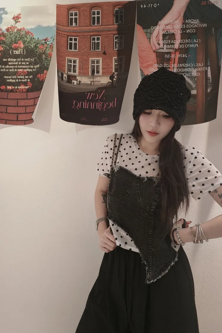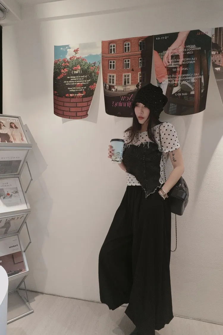 ✦拼接牛仔不可拆 無罩杯