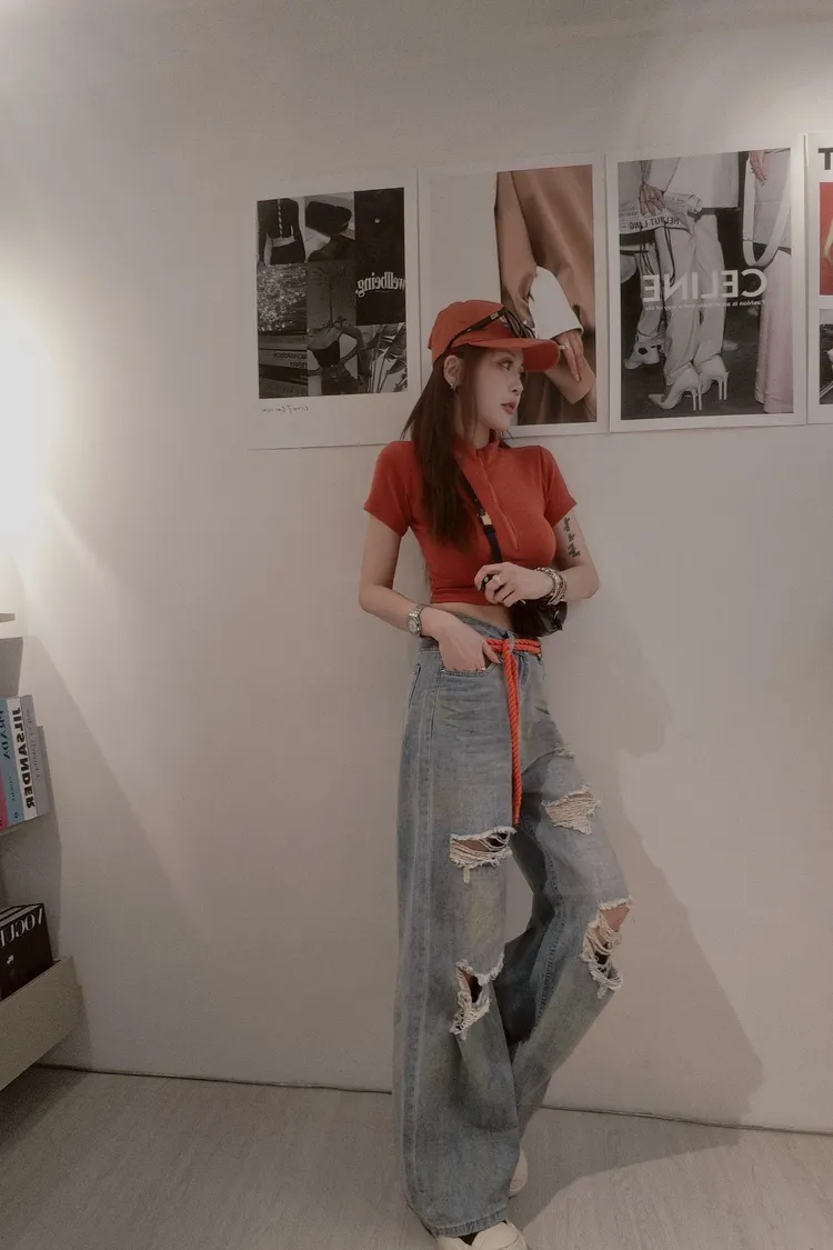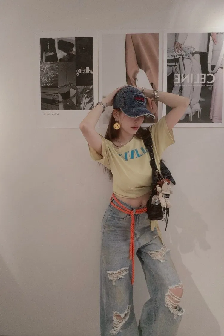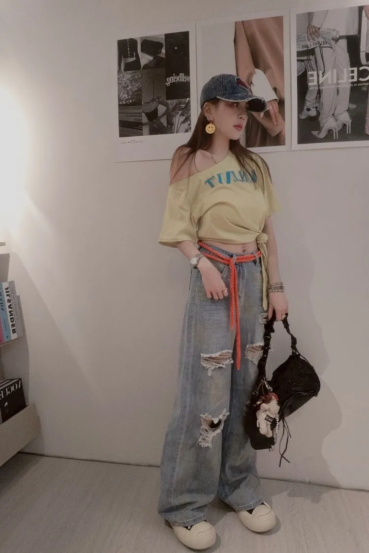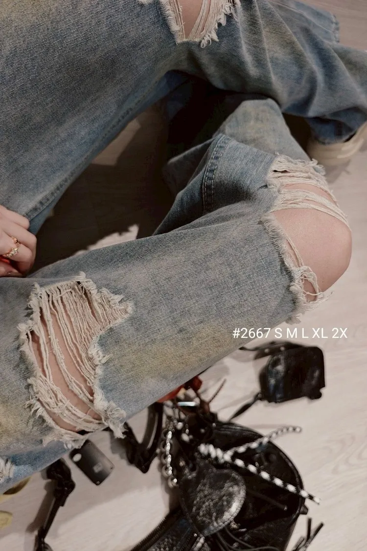 ✦正常版 照臀圍穿S M L XL 2X✦沒有附腰繩喔!(私物穿搭)✦S號褲長約107版型真的真的很好 褲長也很足夠167穿真的可以落地!(小個需要修改尺寸唷)淺黃色刷漆 還有帥氣的破破這條我推🖤顏色:圖片色