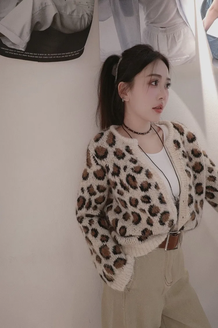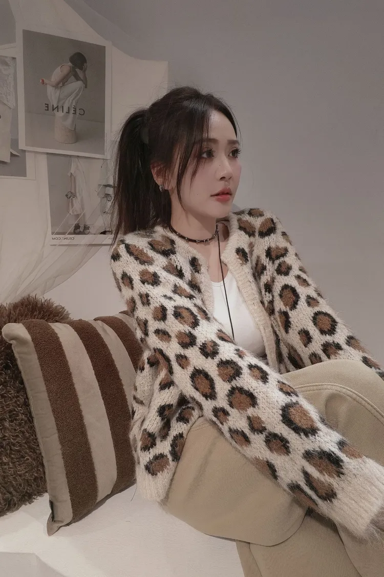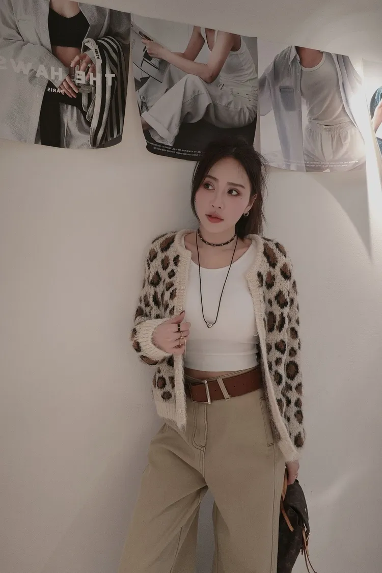 豹紋開扣罩衫