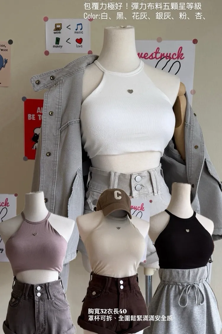 削肩愛心罩杯背心