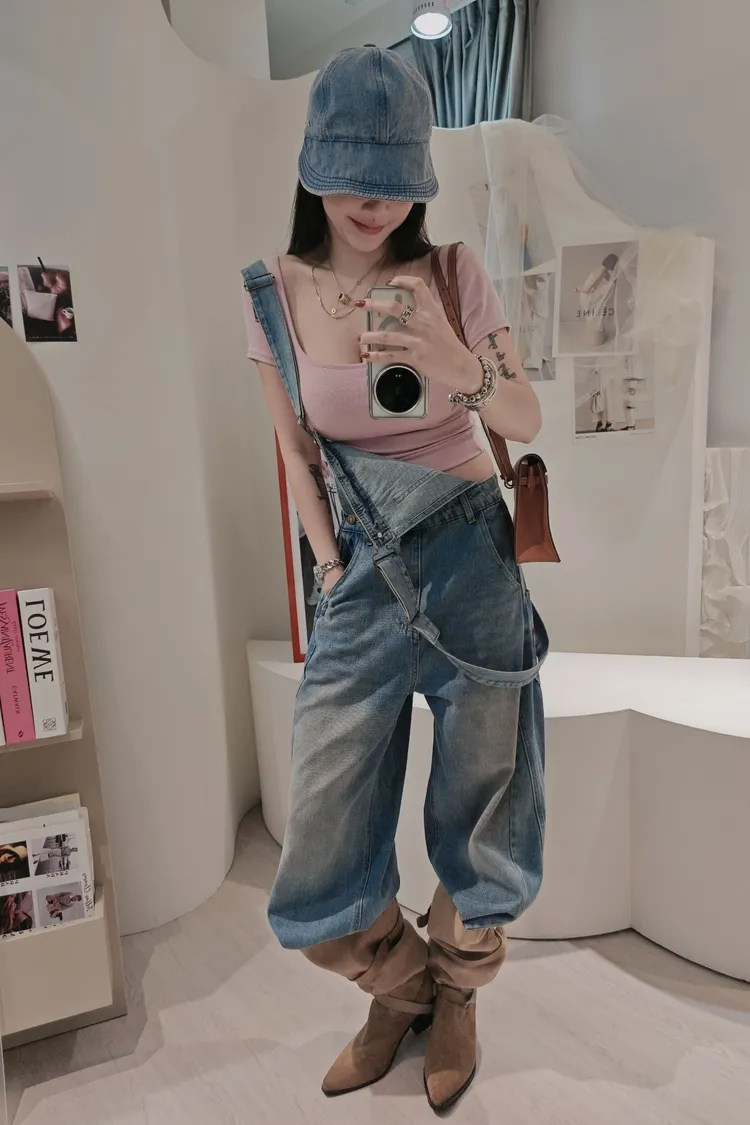 小眾繭型吊帶褲