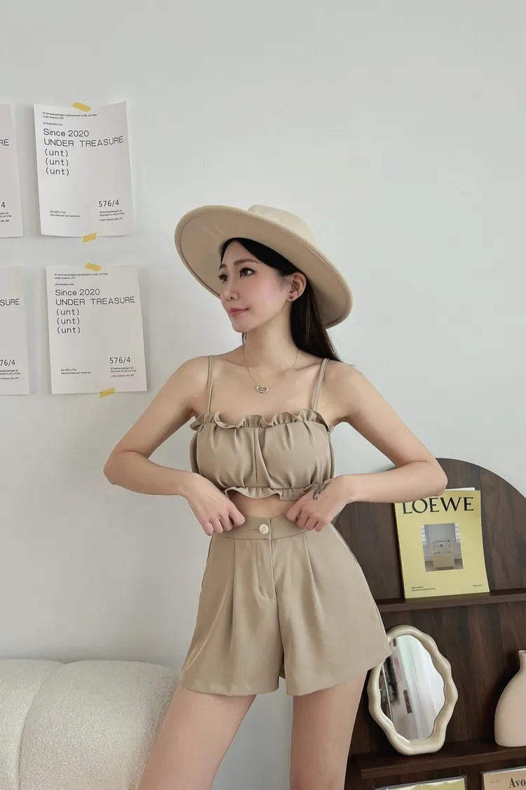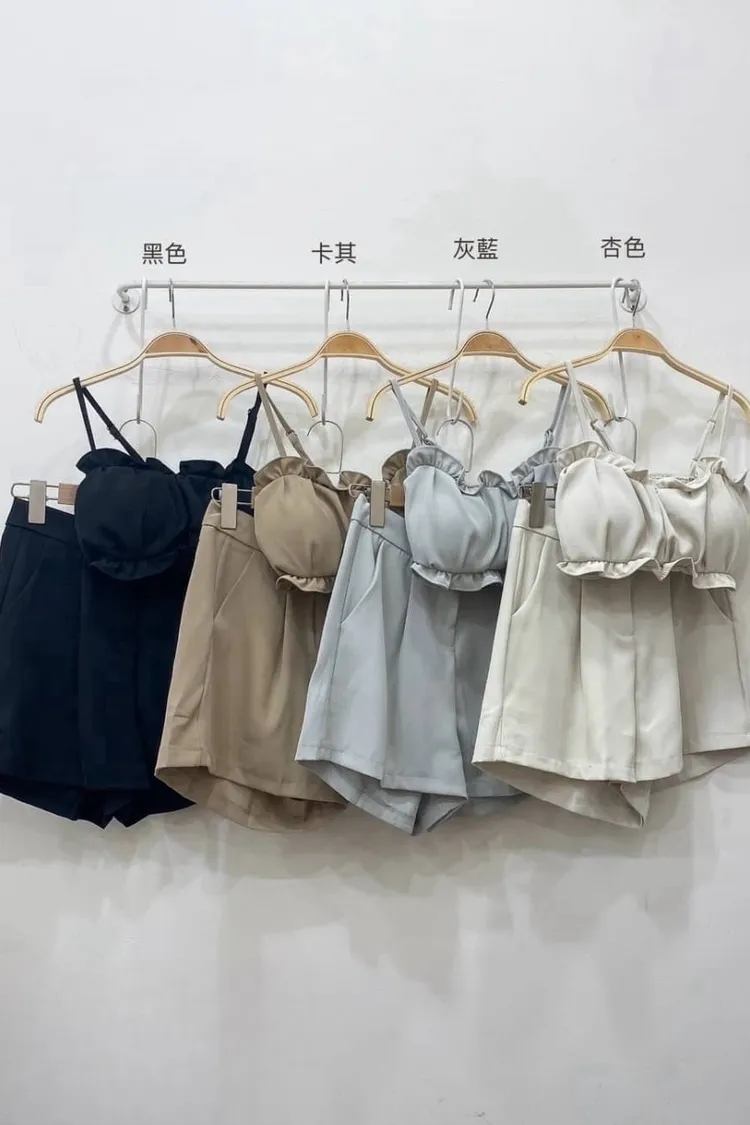 花苞細肩短褲兩件套