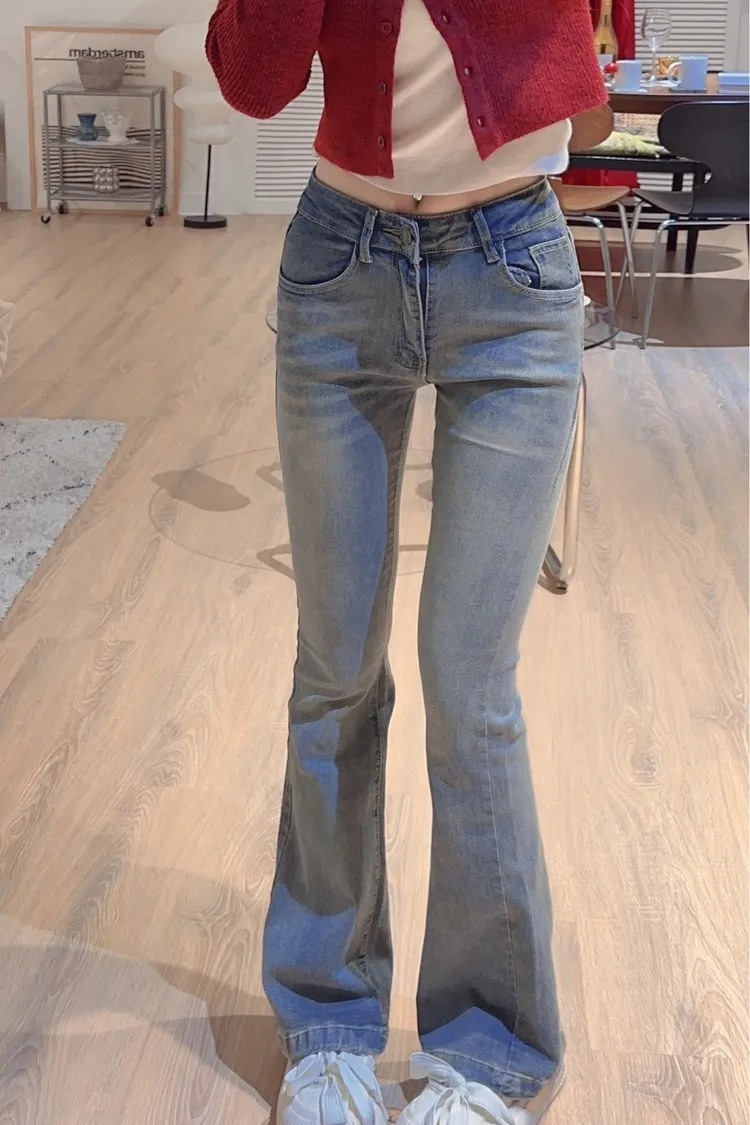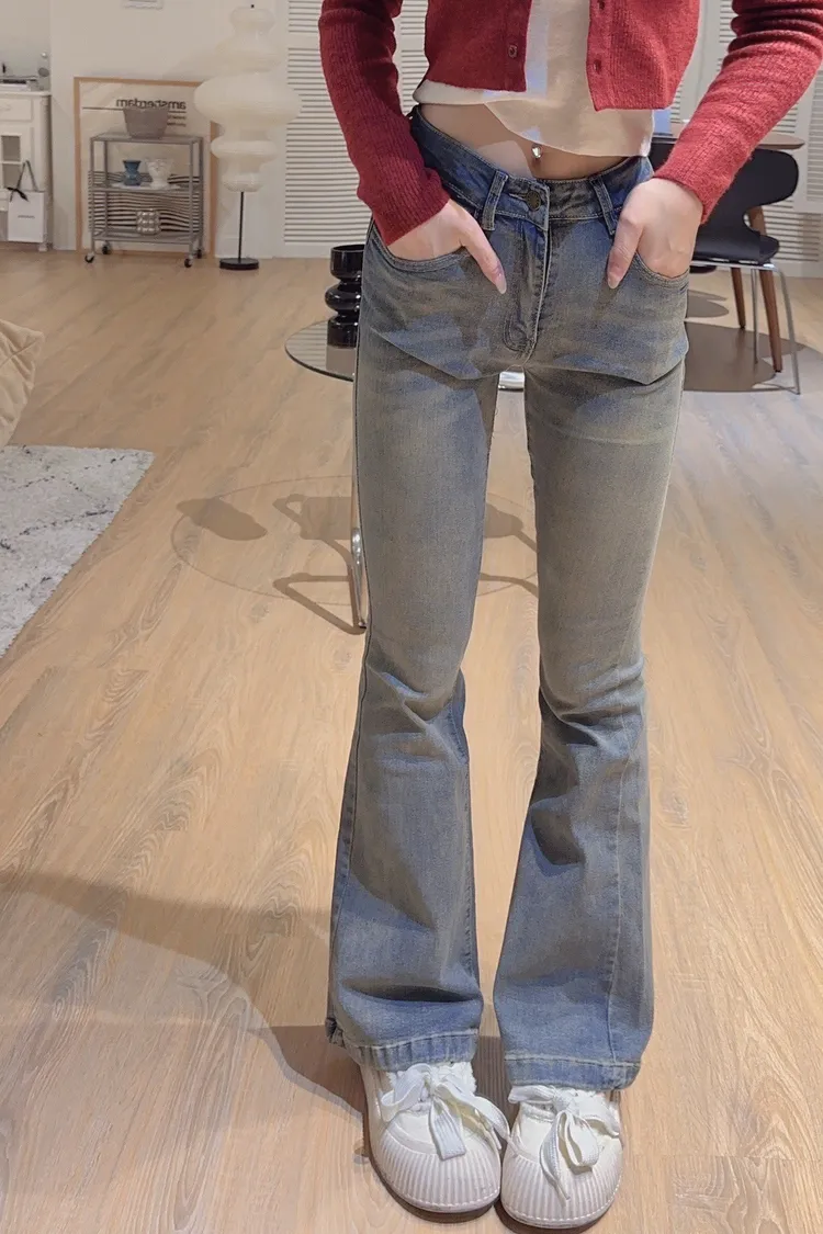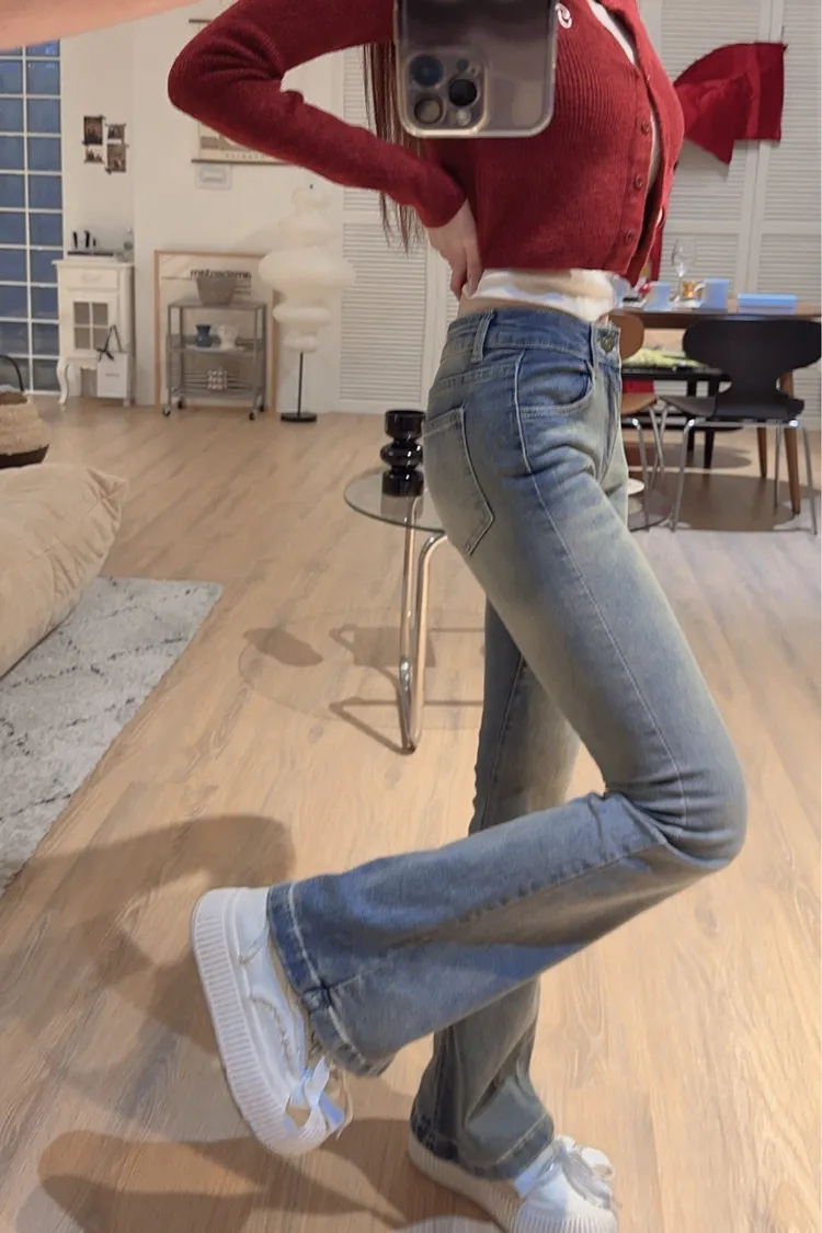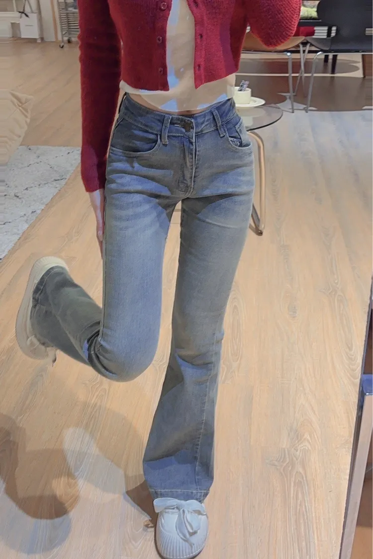 復古做舊水洗刷色 真的巨巨有氛圍感!秋冬寶藏神褲!不容錯過!!上身立馬尖叫!!比例瞬間170這條褲子的版型真的非常非常美~特愛它的高腰設計 更加收腰提臀彈性很高 上身舒適度更高!!小腿處微喇叭修飾小腿型 採用緊實的面料有狠好的塑形能力上身舒適感敲棒有彈性與任何上裝外套搭配起來又颯又美~輕鬆GET小蠻腰+漫畫腿!