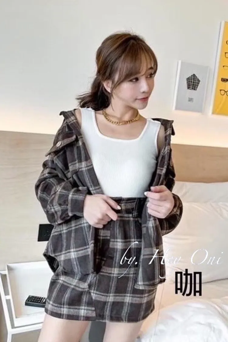 秋冬款 格子真的是必備溫暖毛呢料 降溫變涼的天氣穿很OK上衣顯瘦剪裁 扎進裙子腰身馬上出來胸前有兩個真口袋-A字裙比例逆天 後鬆緊腰 S~L皆可穿 前後也有各兩個口袋超方便好適合搭配長/短靴露出腿部線條回頭率秒變高!!!小隻女女孩穿這款也直接抽高沒有開玩笑喔~