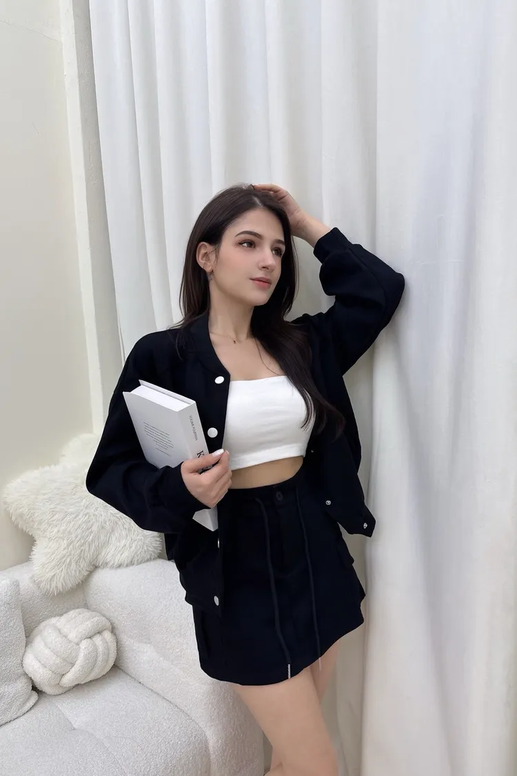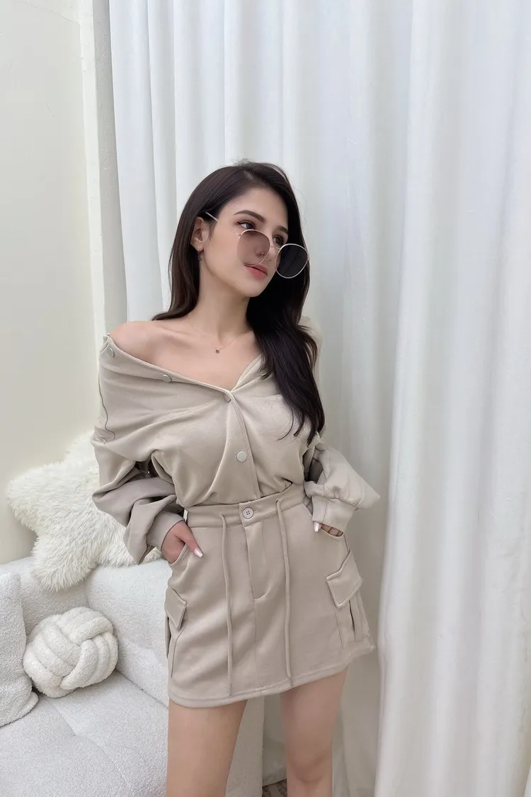 外套 胸寬52 衣長57褲裙 腰寬35~52 長35超級推這款~ 完全不限身形的套裝 ! 拆開穿也好看 CP好高彈力超好 小幫手XL腰臀都能穿 !!S的美女也不用擔心腰部是綁繩可以調整 裙身是A字版型基本上太空層的面料是365天都能穿夏天搭背心或平口 冬天搭打底衣或磨毛發熱衣之類的顏色:深灰/黑/奶茶/灰
