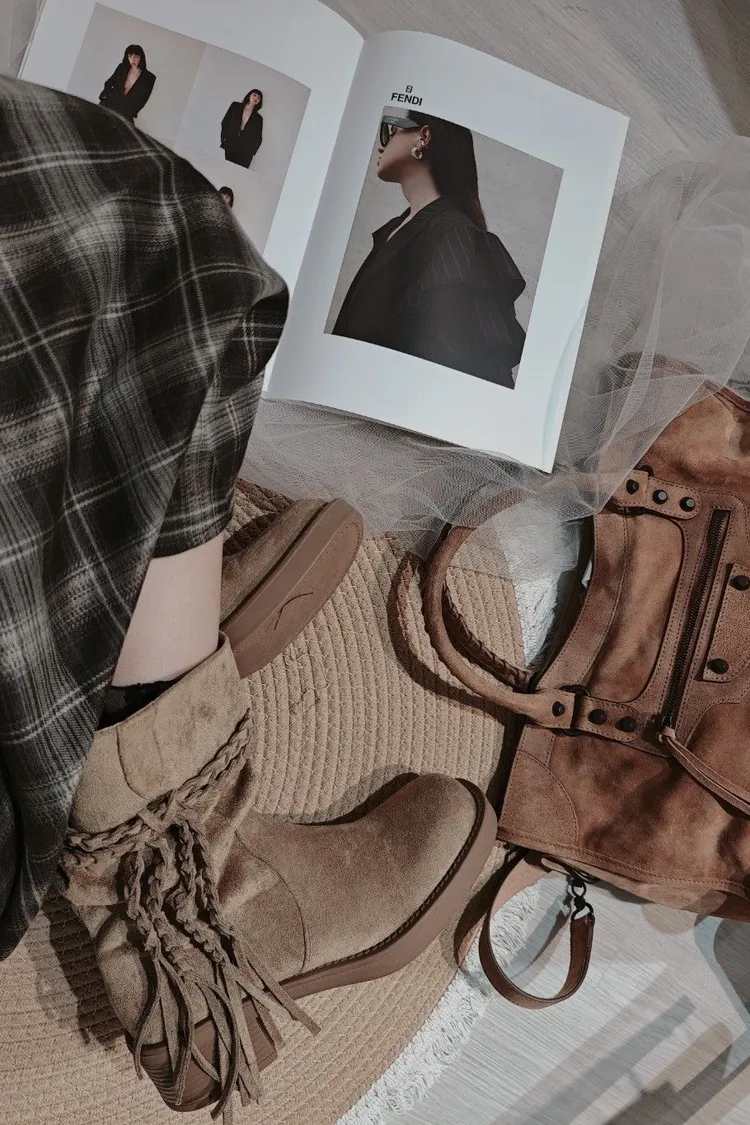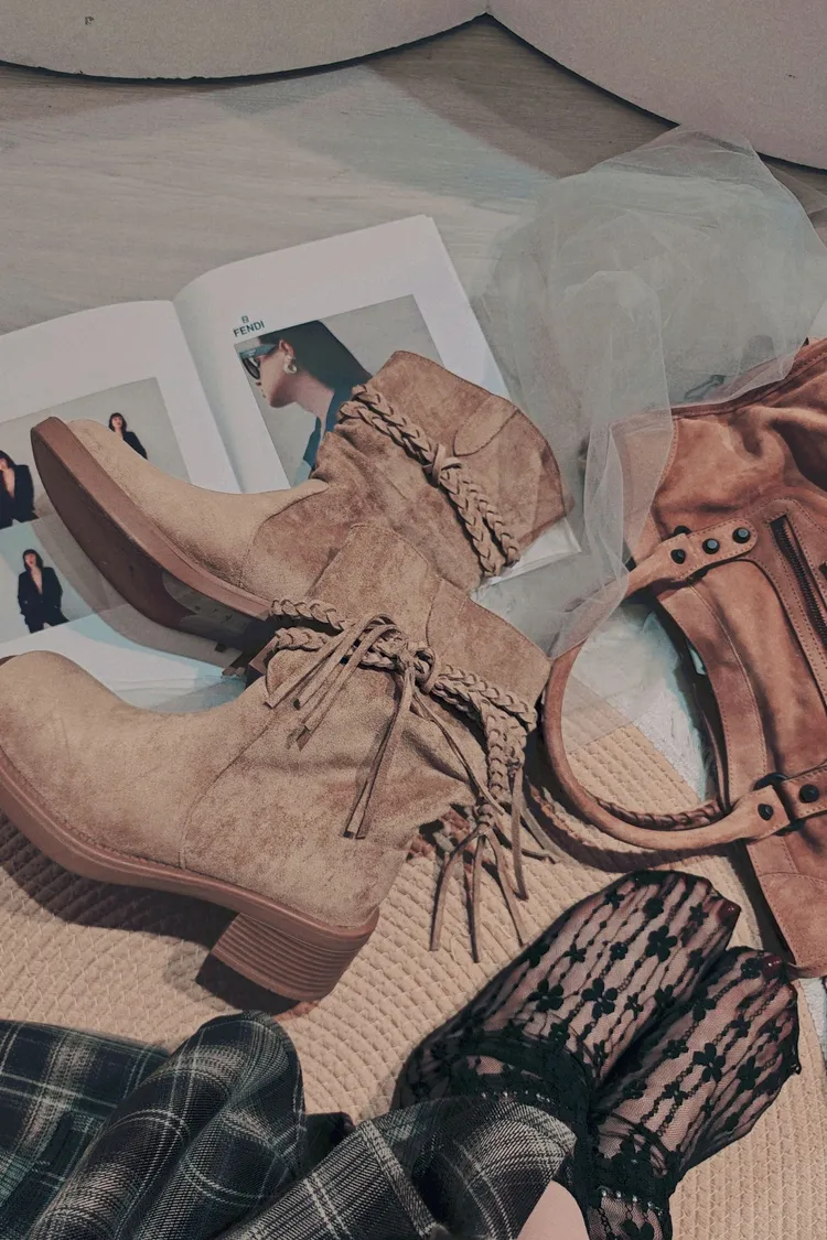 麻花辮麂皮靴