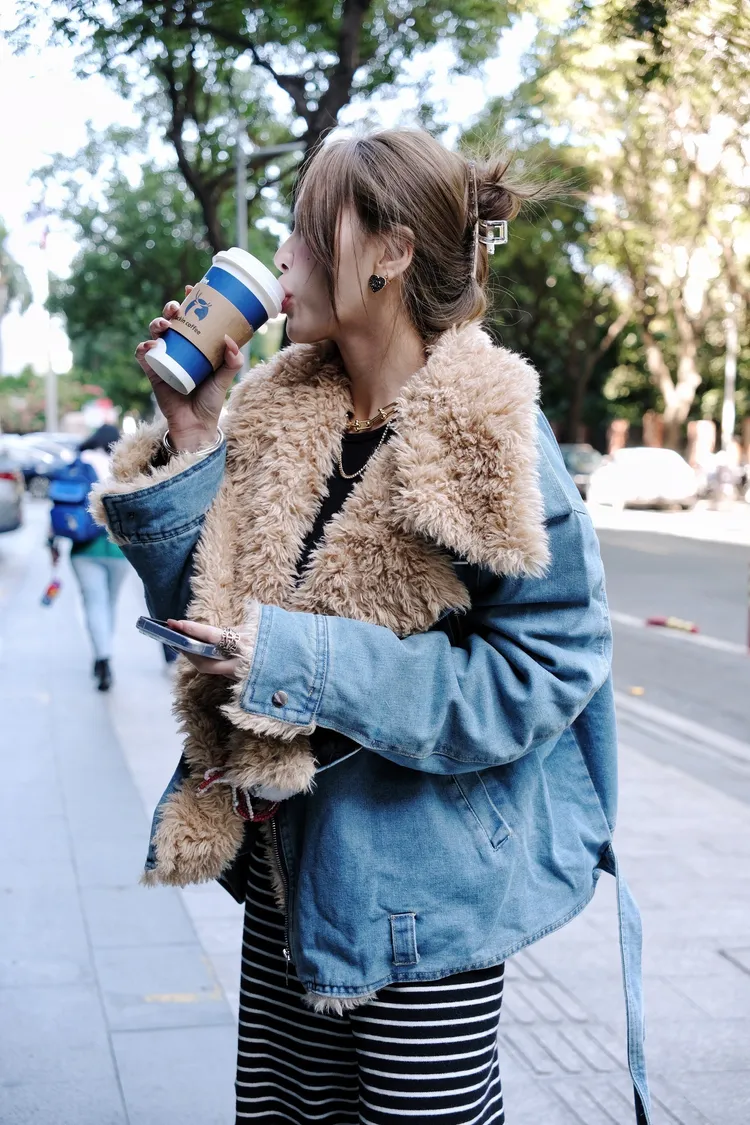 -很可愛的泰迪領騎士感結合超有質感不會硬梆梆的牛仔材質