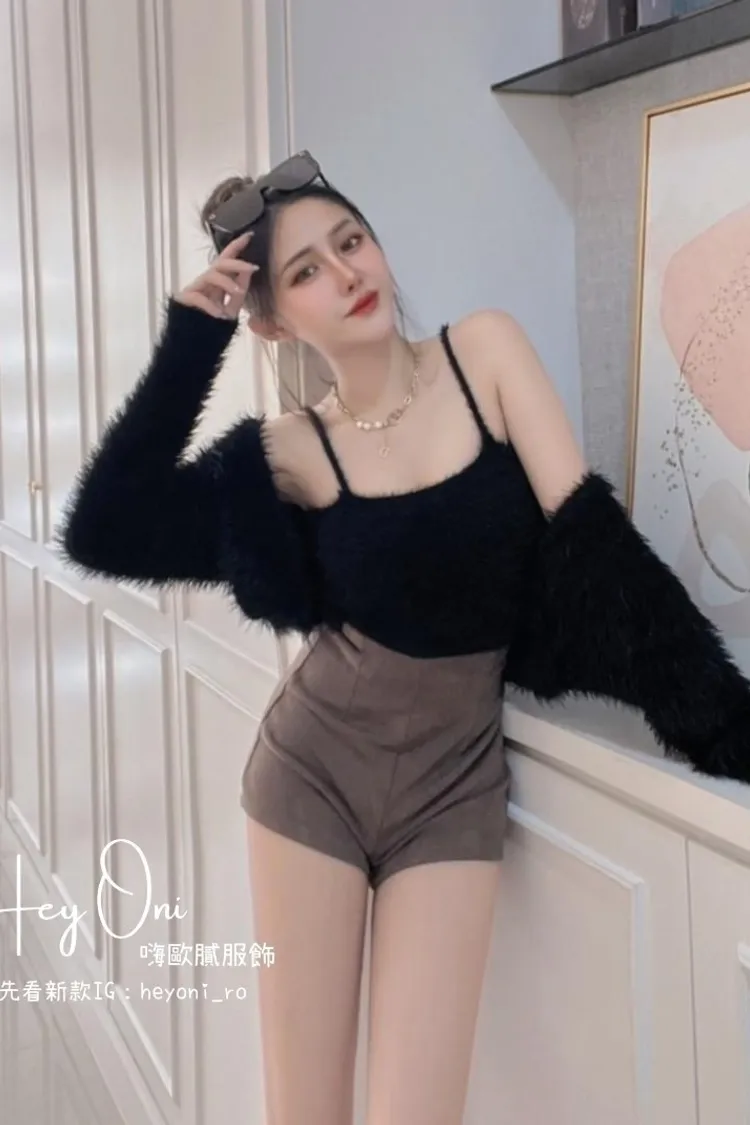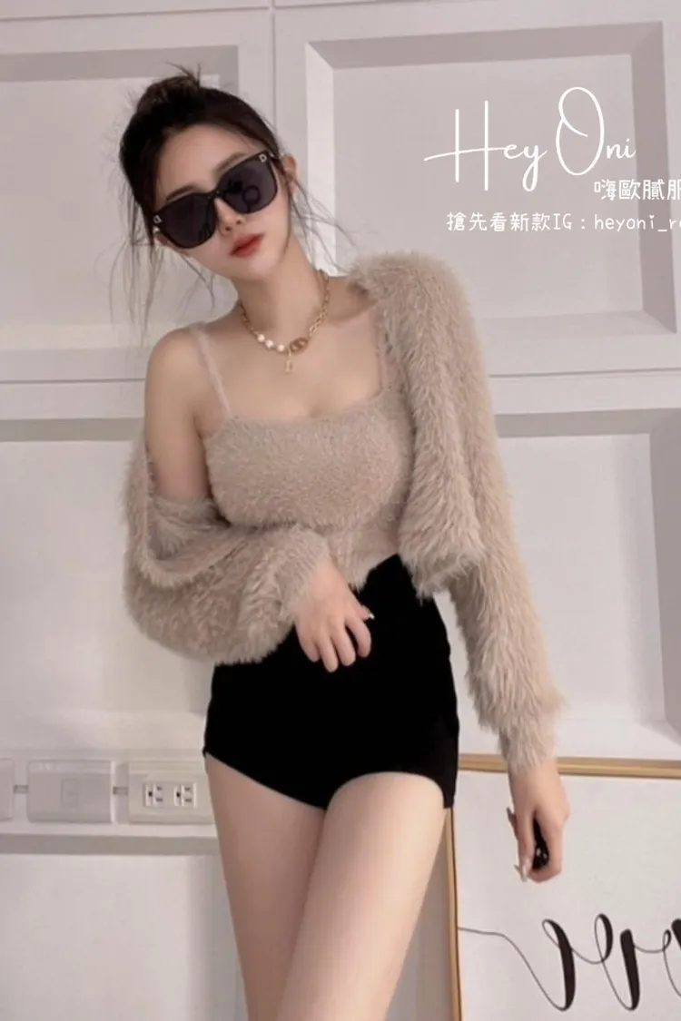 超柔軟海毛長水貂毛背心➕罩衫套裝