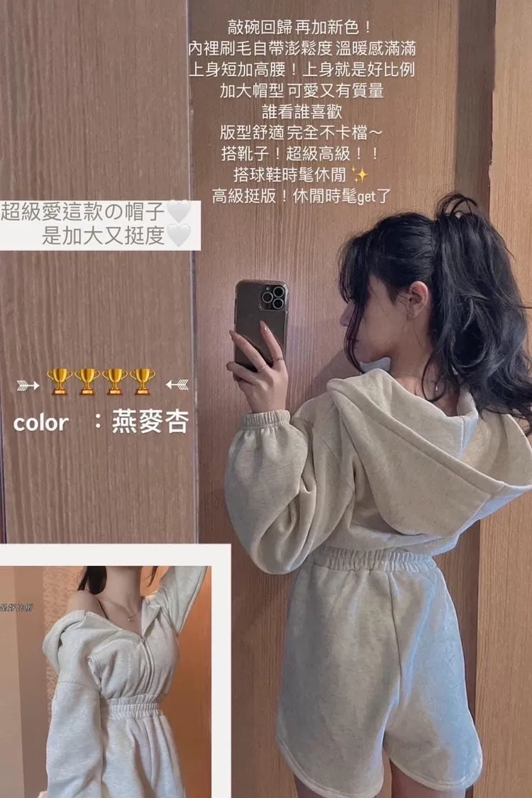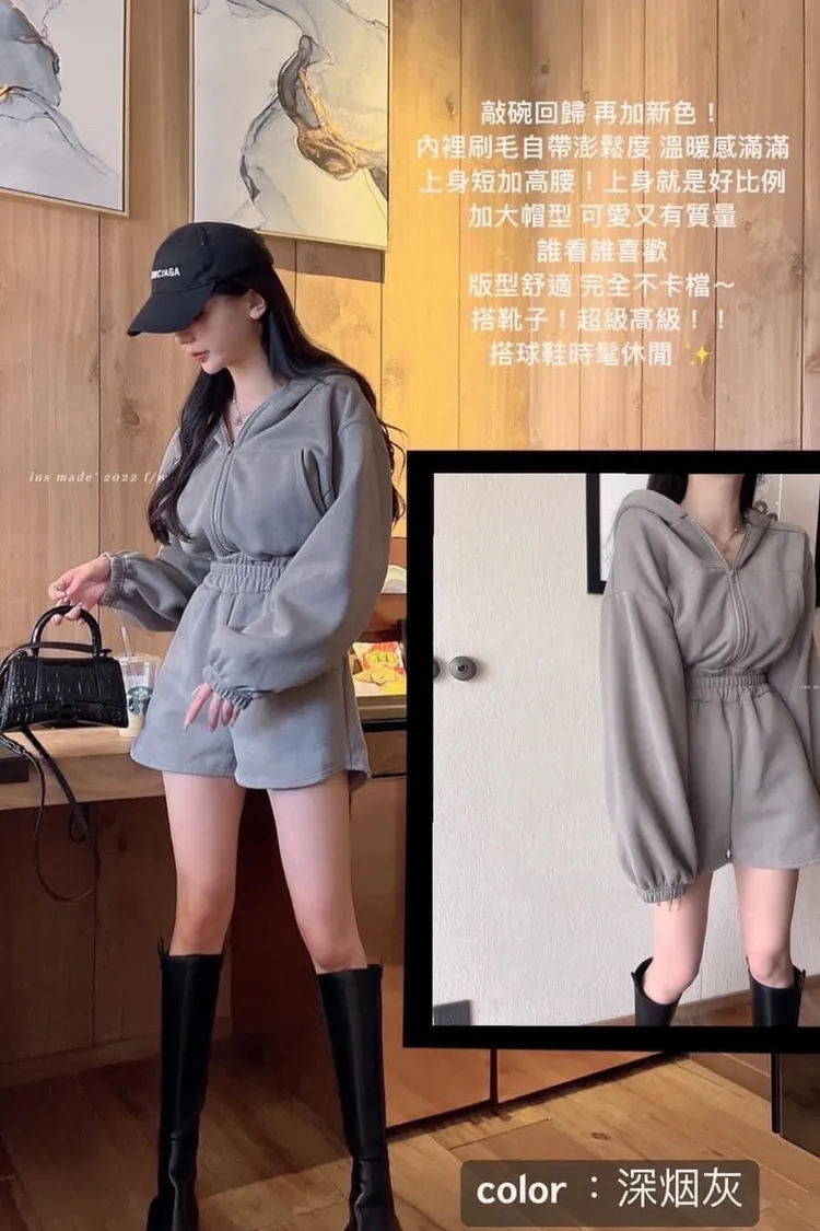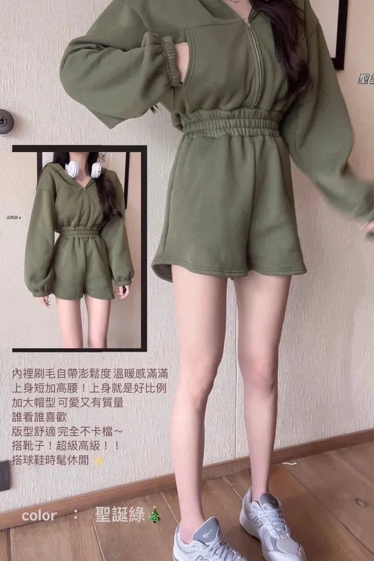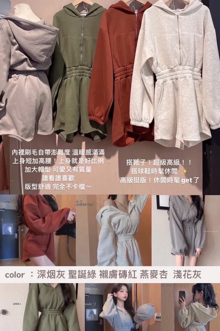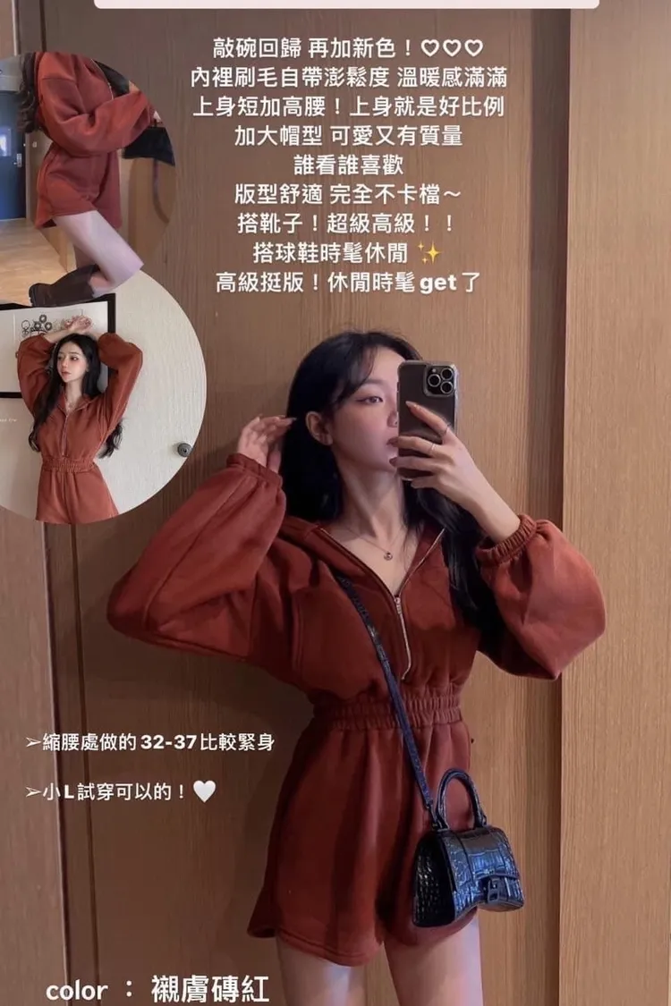 😍強勢回歸‼好身材帶帽縮腰連身褲💕加厚內刷毛!加大澎袖 深烟灰 聖誕綠 襯膚磚紅 燕麥杏 淺花灰 去年第一名! 敲碗回歸 再加新色! 內裡刷毛自帶澎鬆度 溫暖感滿滿 上身短加高腰!上身就是好比例 加大帽型 可愛又有質量 誰看誰喜歡 版型舒適 完全不卡檔~ 搭靴子!超級高級!! 搭球鞋時髦休閒 ✨ 高級挺版!休閒時髦get了 縮腰處做的32-37比較緊身 小L試穿可以的!