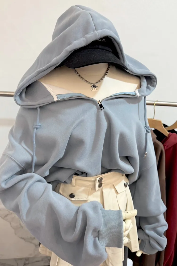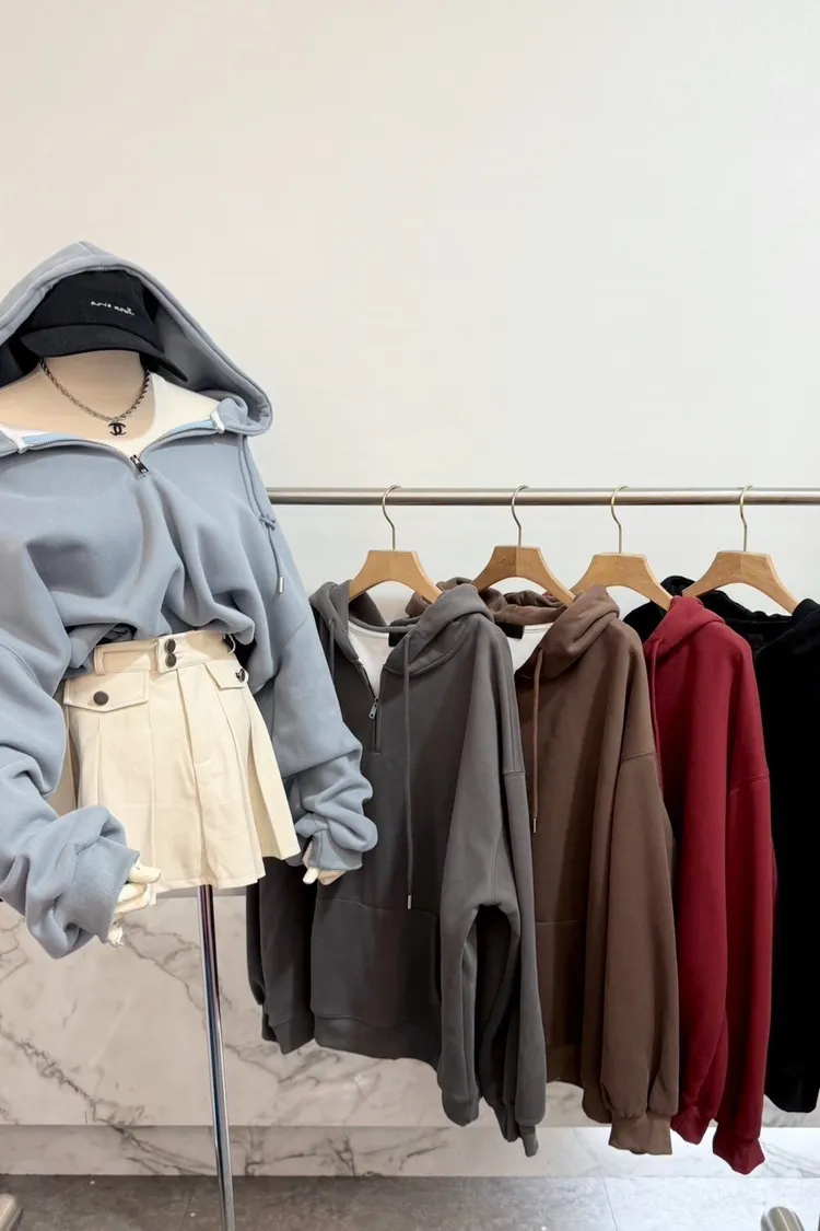 可以穿到XL 內裡寶寶絨超暖 |訂製款簡約質感| 厚實但不重穿上就是舒服的安心感 寬鬆挺版 很挺的雙層帽子 好喜歡 拉鍊設計小個性很耐穿 胸寬65 / 衣長 69 顏色:深灰 / 咖 / 紅 / 黑 / 藍
