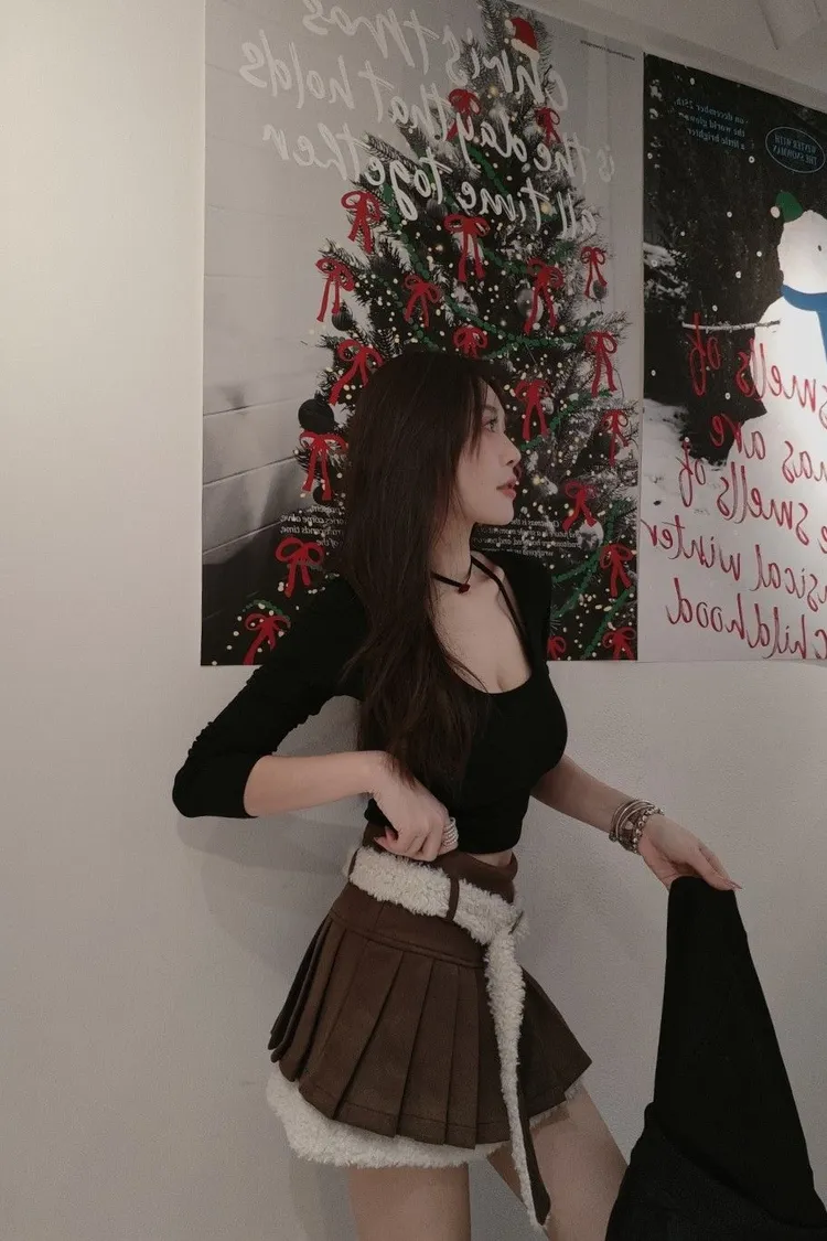 雙層麂皮絨百褶裙