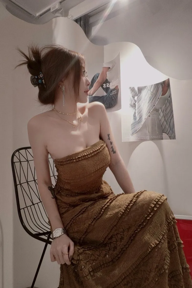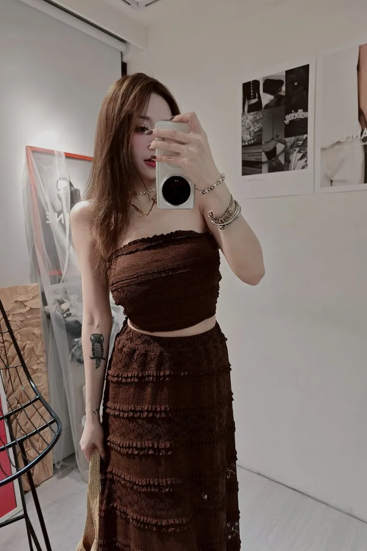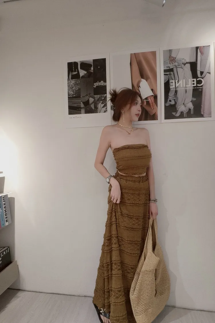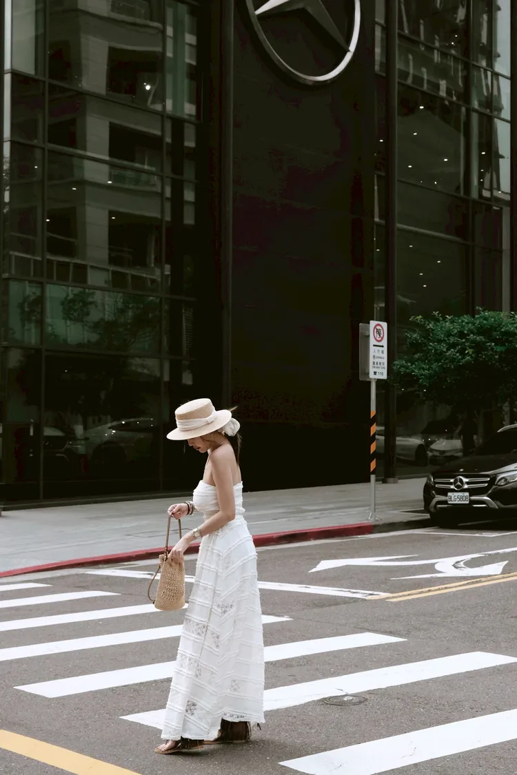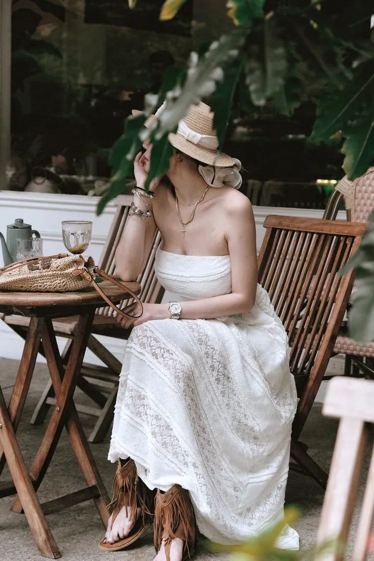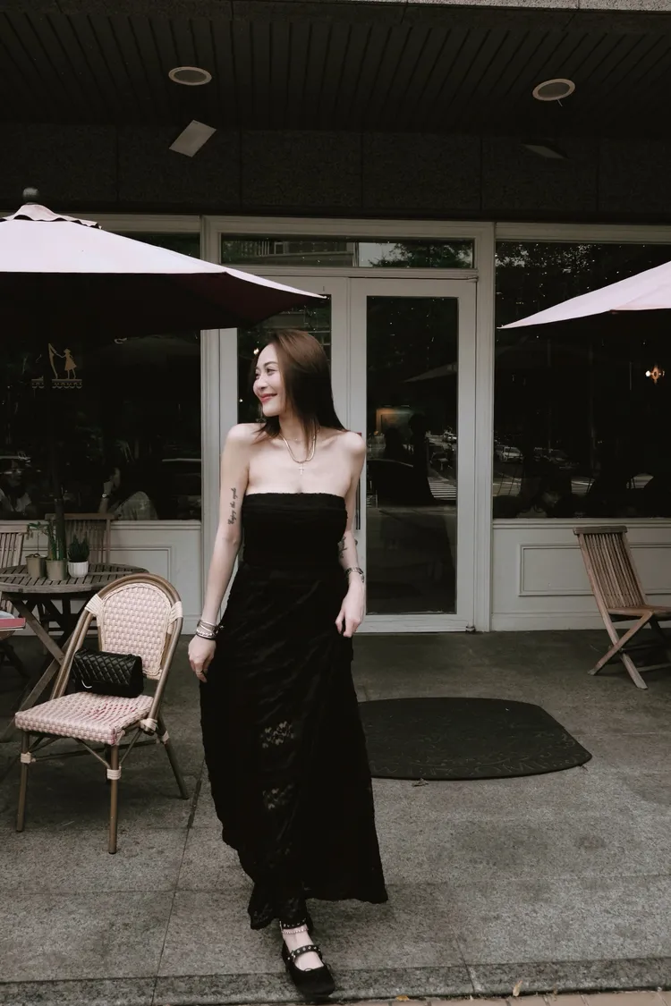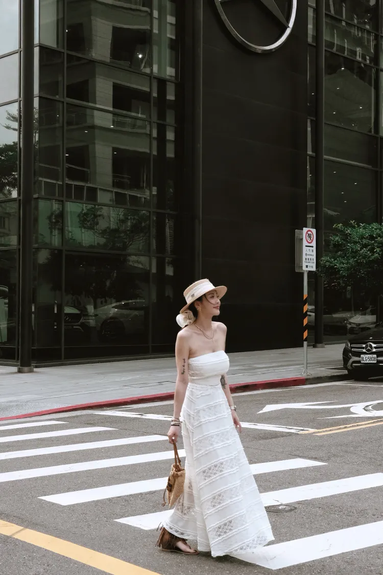 胸寬29~36衣長21腰寬30~40臀寬56裙長102在城市裡渡假♡Love city不會刺的立體彈力緹花布蕾絲裙身有內裡(不透內褲)鬆緊長裙擺!夏日渡假風上下可以自己分開穿搭不分尺寸、可以穿到L平口上衣有罩杯 不可拆後背全鬆緊、胸部有止滑膠條