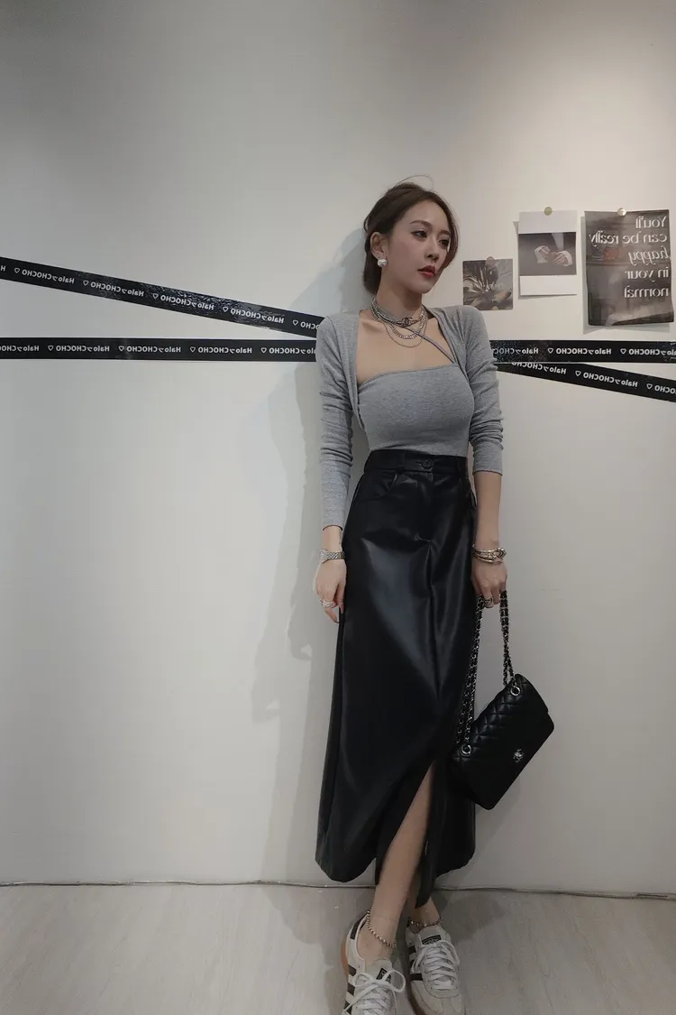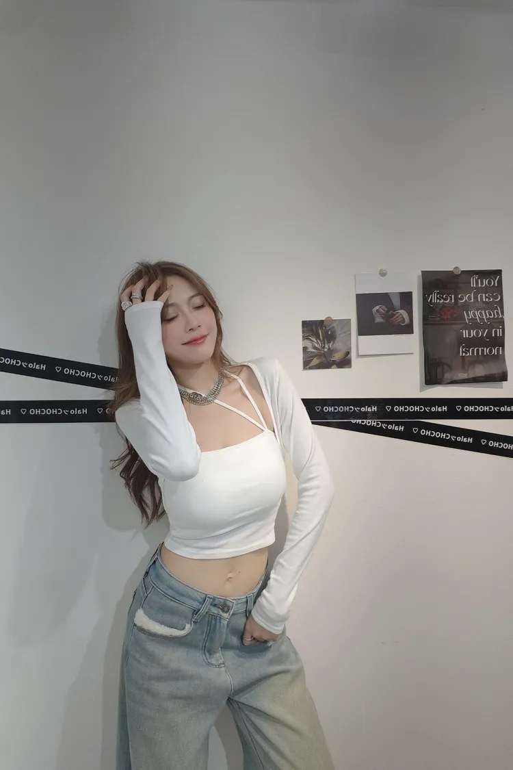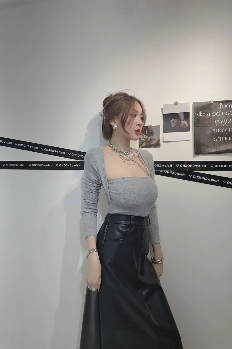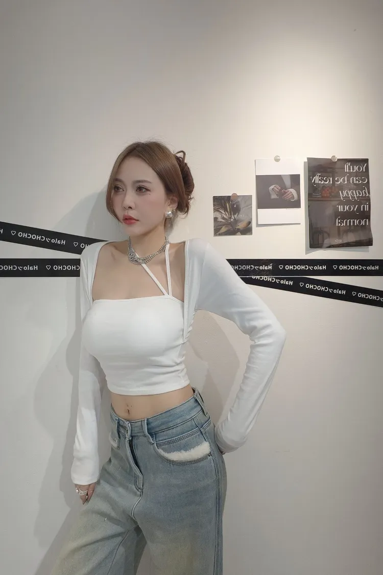 假兩件斜邊掛脖上衣