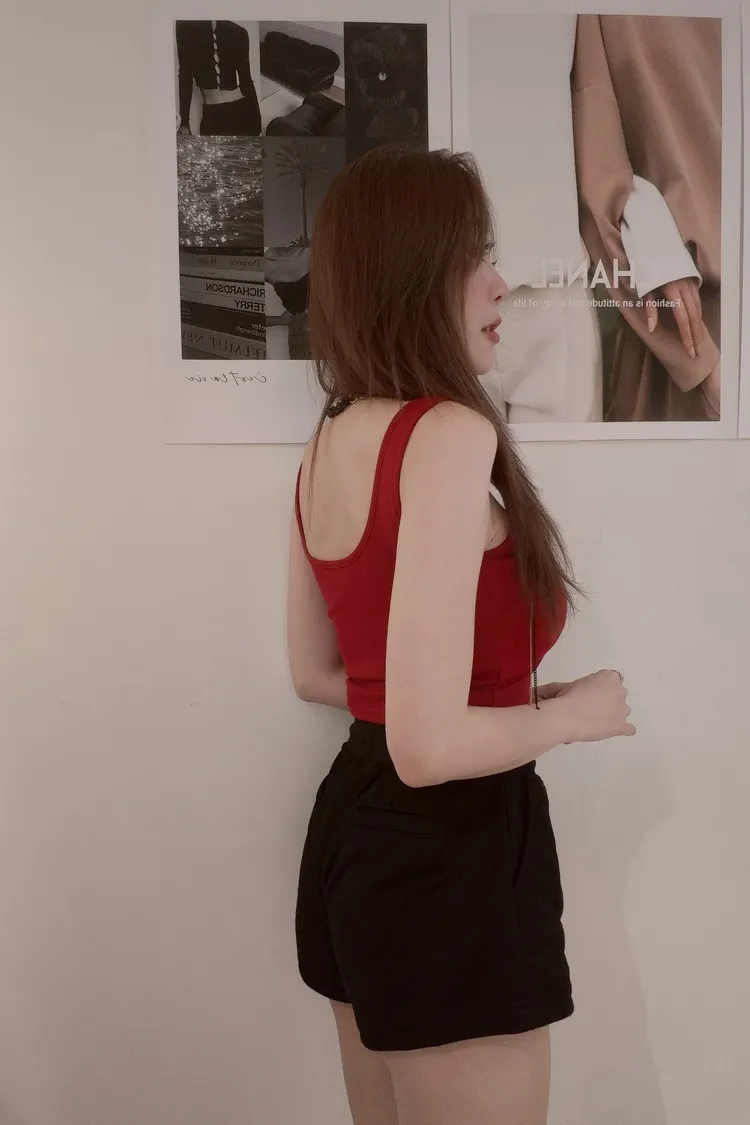(隆胸完很容易穿背心會顯壯 所以真的瘋狂修改到最極致能顯瘦的肩帶寬度!)火辣紅顯白藍基礎白顯瘦黑質感霧灰