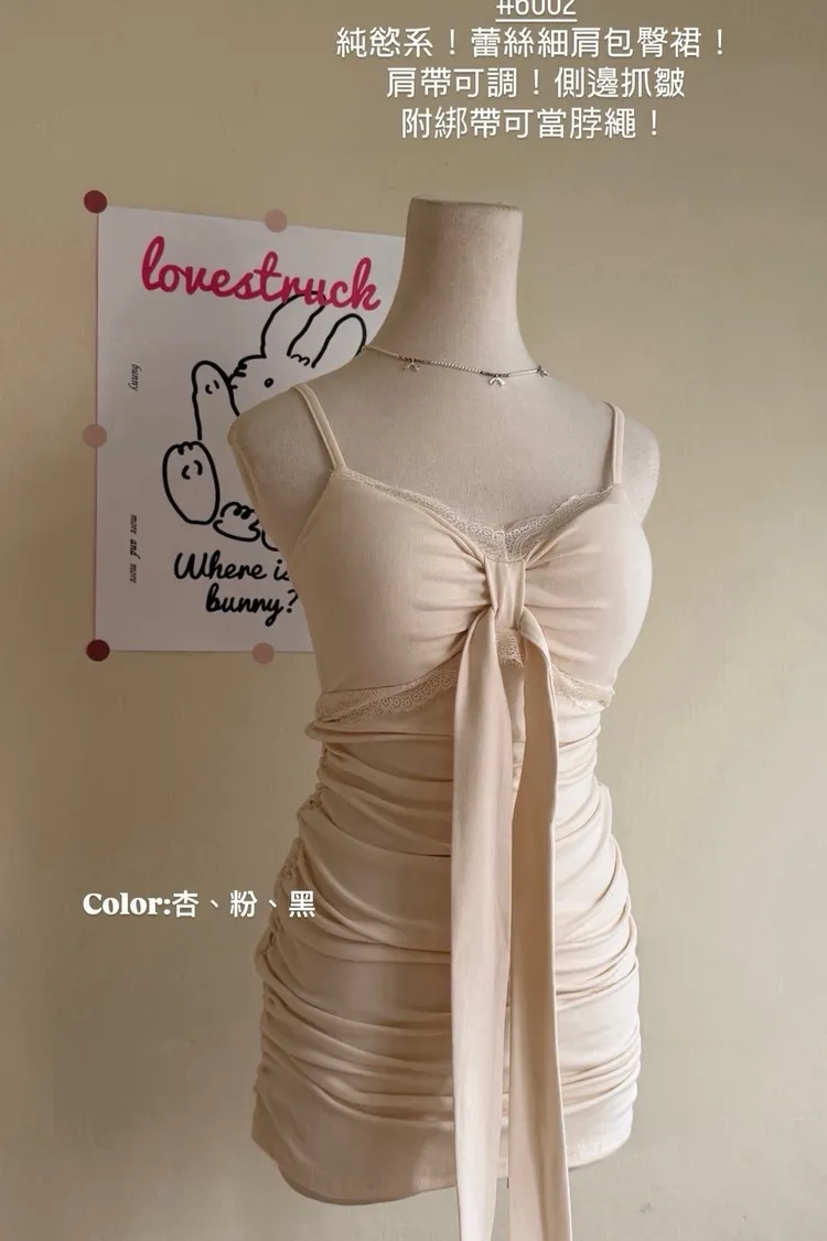 純慾系|蕾絲細肩包臀裙