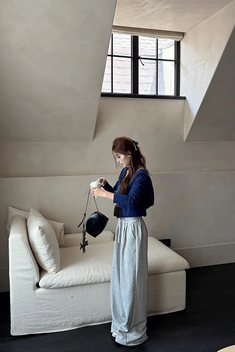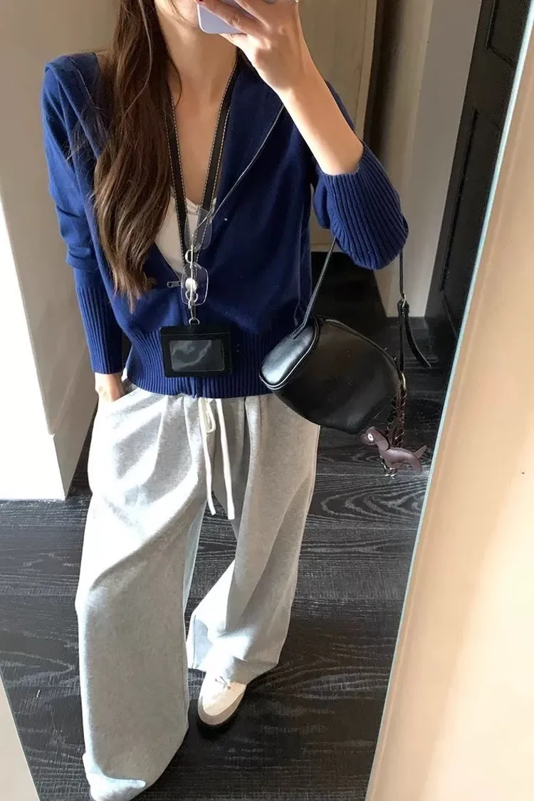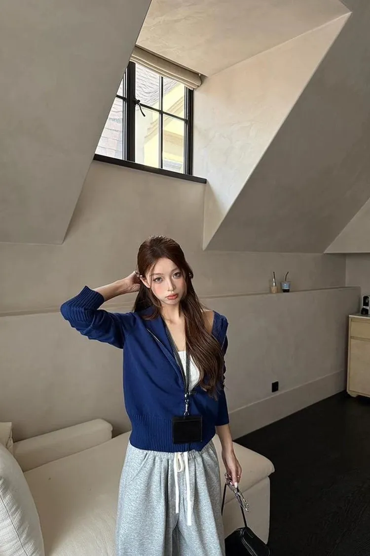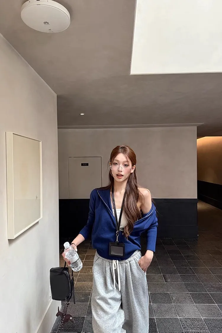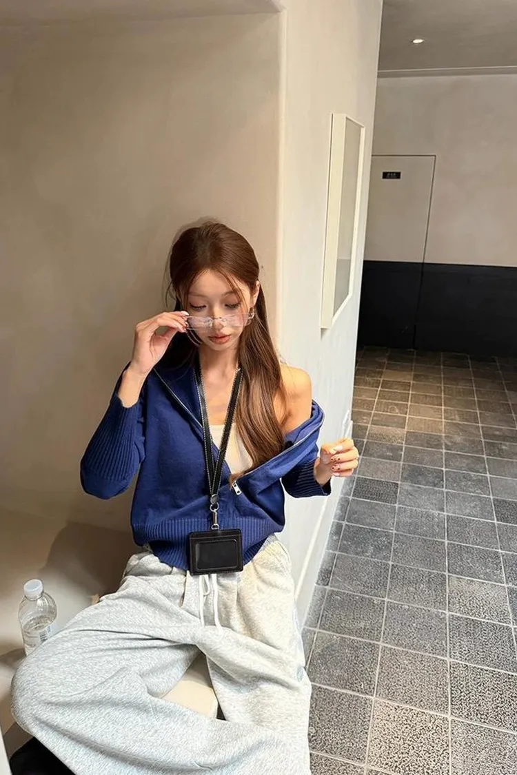 拉鏈藍色罩衫+灰色長褲 整套💰1080