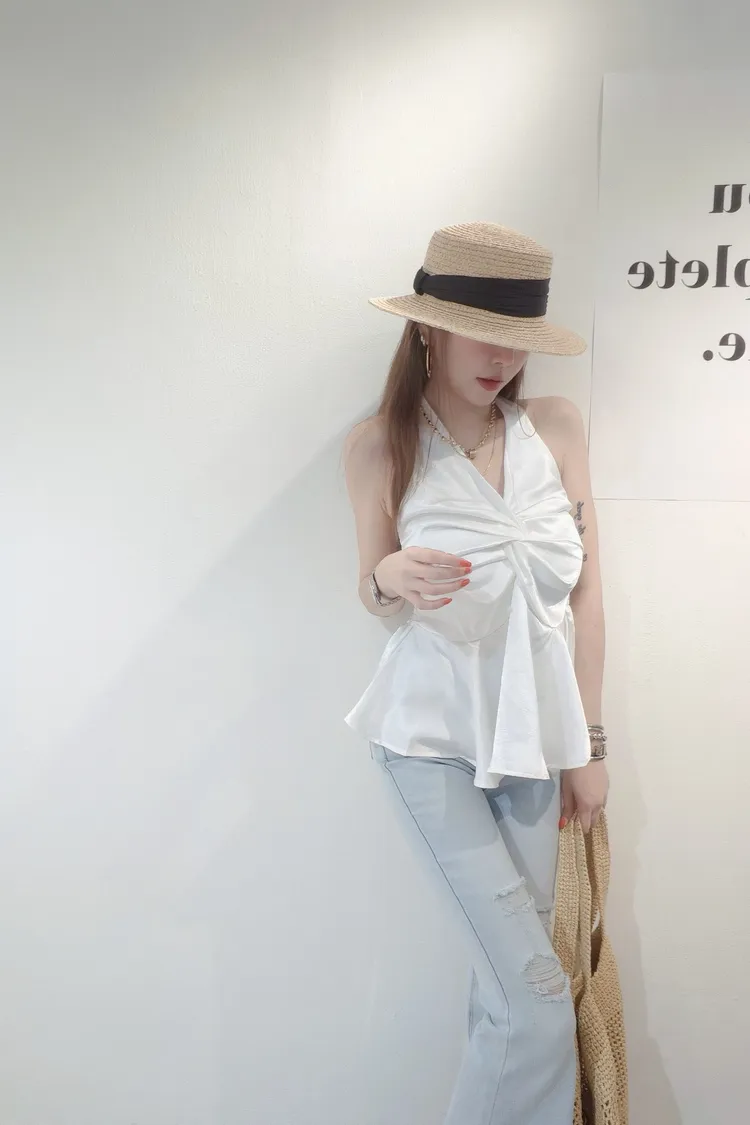 掛脖深V背心