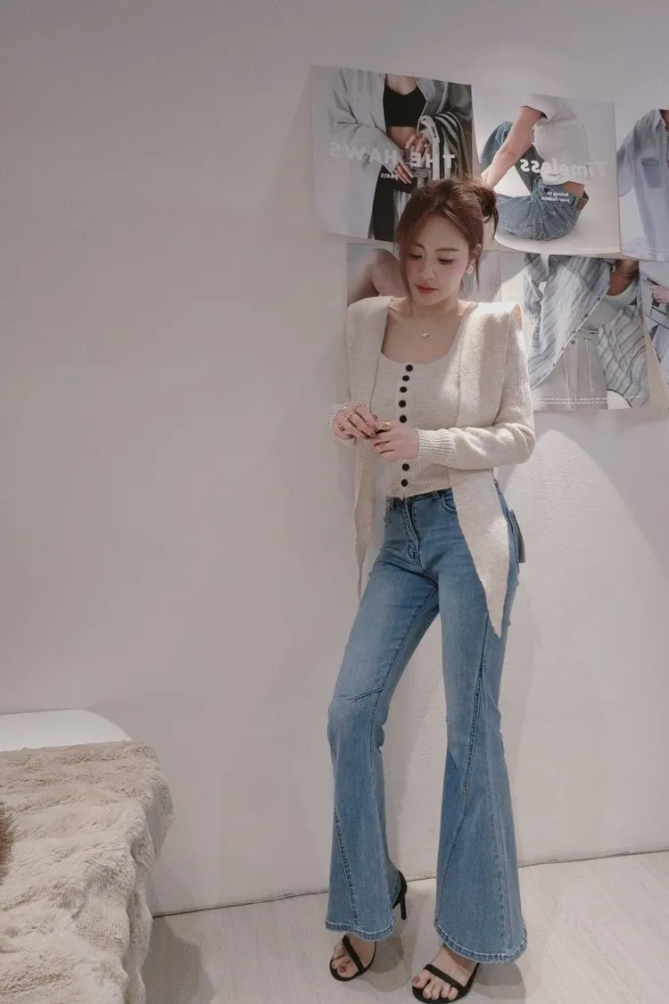 秋冬靴子開跑,9分喇叭褲會成為很好的搭配長度(此款非全長)