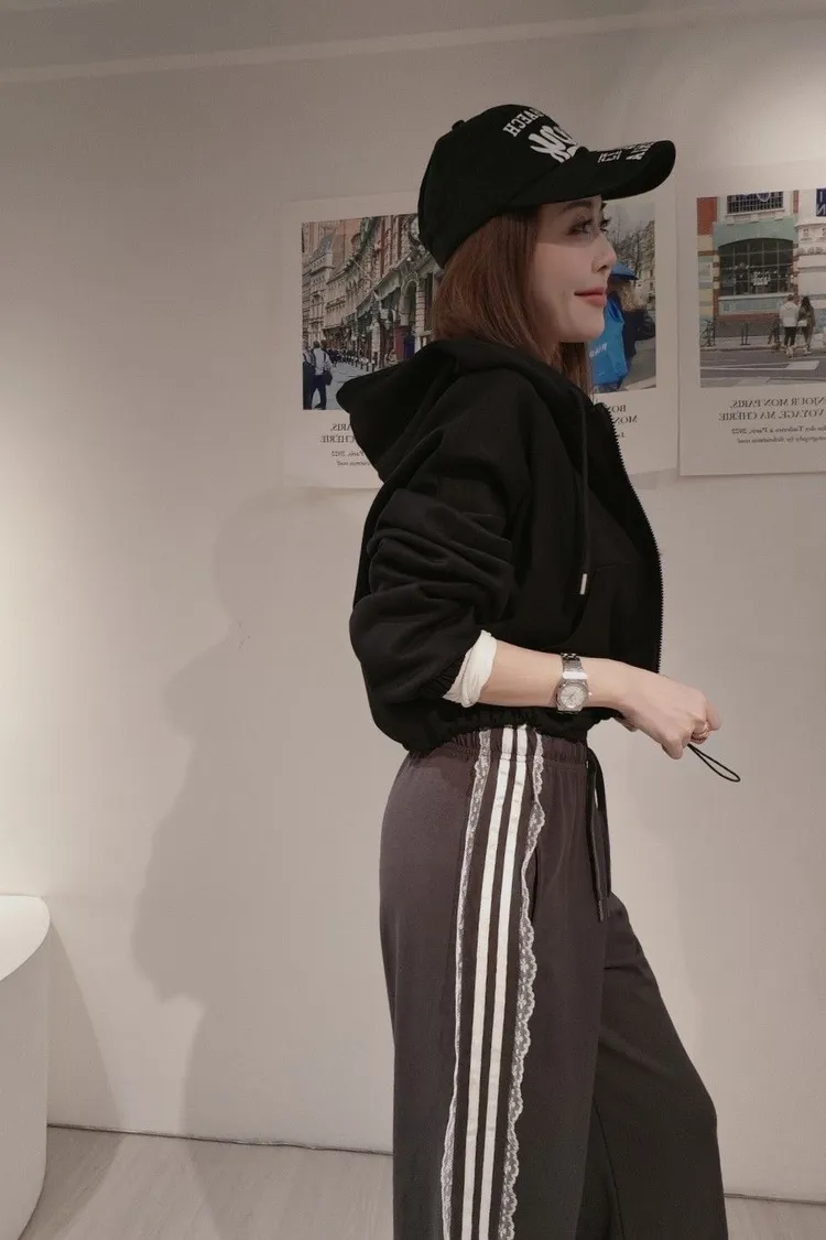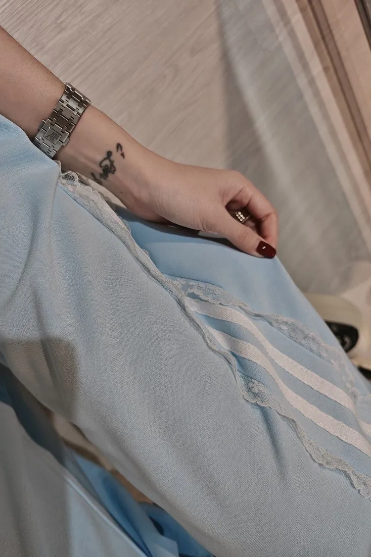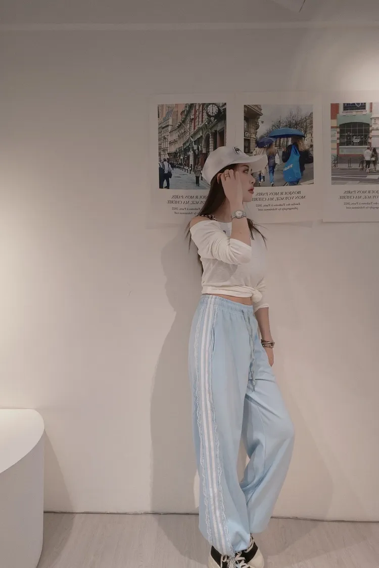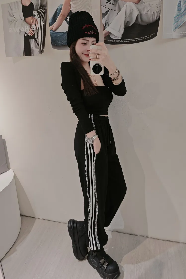 蕾絲邊休閒縮口褲