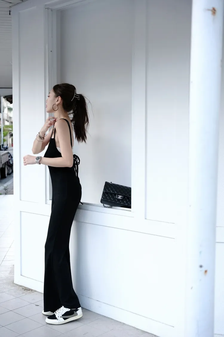 ✔️彈力面料✔️全身材友善 不挑人✔️孕婦可穿✔️胸部以下都是腿✔️四季皆可上身怎麼搭?看天氣 想搭什麼都可以現在的天氣搭平口、短版上衣再冷一點 穿高領內搭也好看胯下到褲管長度74cm因為上半部是可以用肩帶調整的所以從胯下量就可以囉~