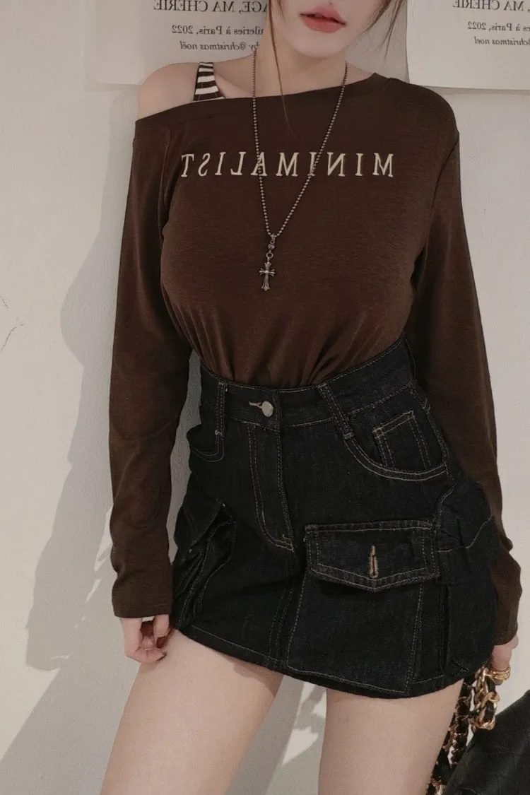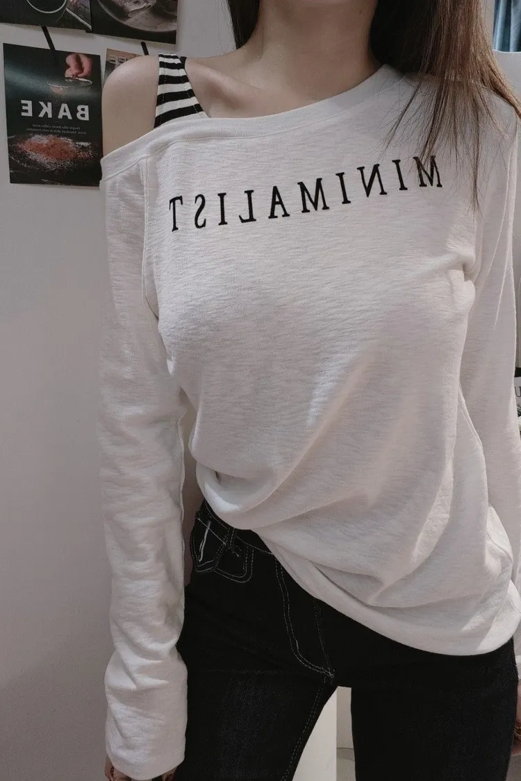 單邊條紋吊肩T
